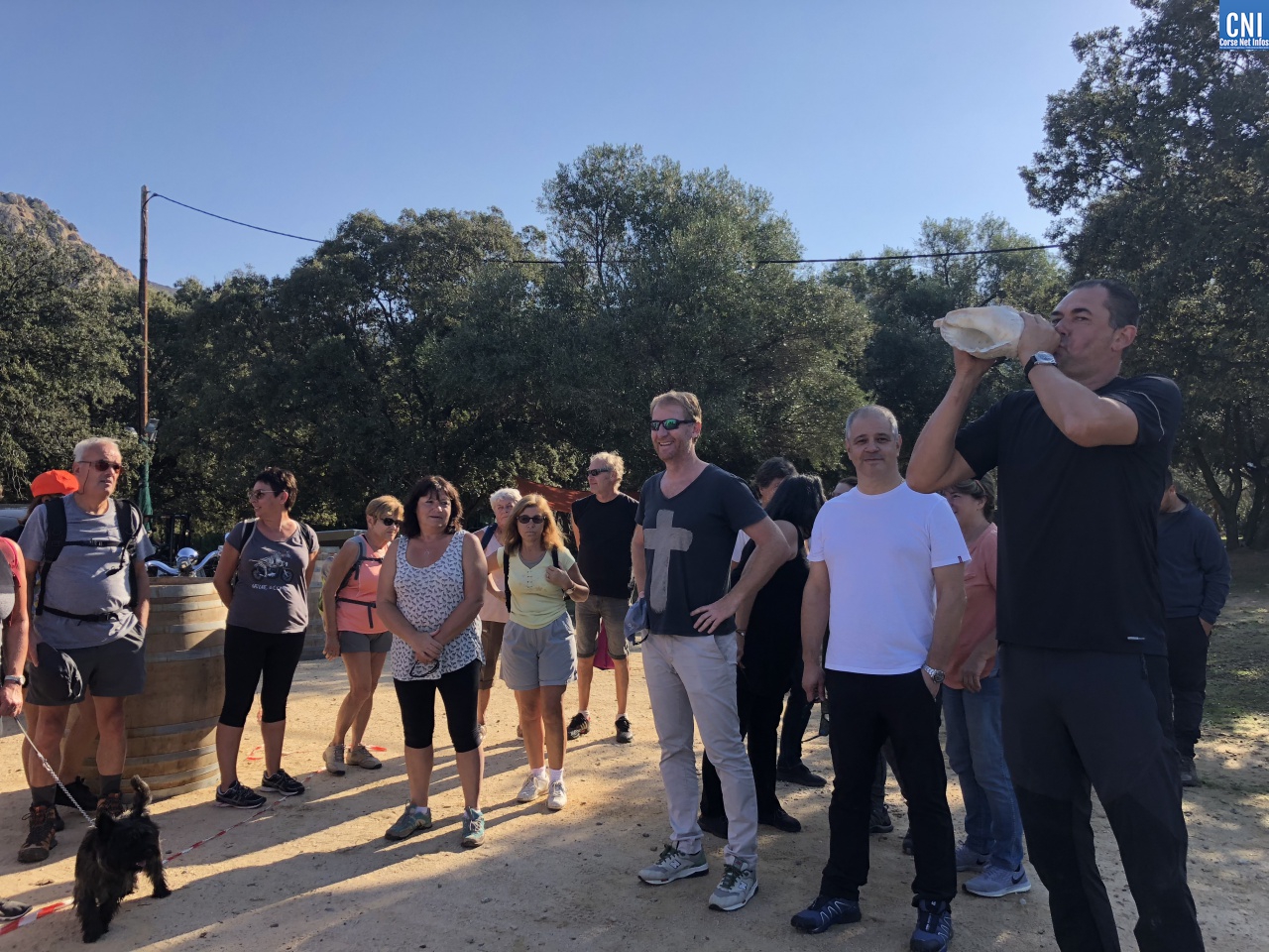 Culombu en main, c'est Étienne Suzzoni le maire de Lumiu qui a sonné le départ de la marche.