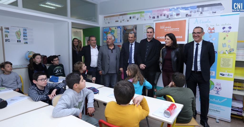 La rectrice d’Académie Julie Benedetti s’est rendue ce jeudi 21 février à l’école élémentaire d’Alata accompagnée de François Tatti, président du Syvadec, Etienne Ferrandi, Maire d’Alata et de François Filoni, conseiller municipal d’Ajaccio délégué à la propreté urbaine.