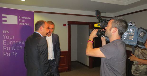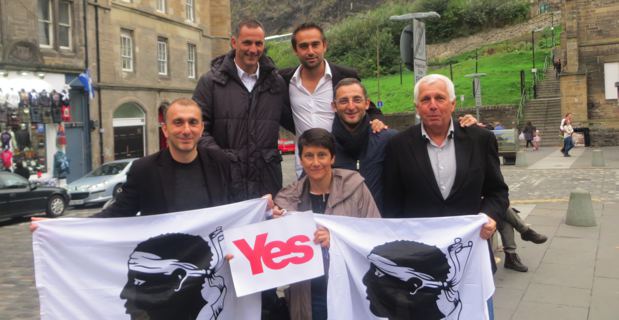 A Edimbourg, capitale de l’Ecosse, ce jeudi est le jour J, celui d’une possible accession à l’indépendance. Le rêve, tant convoité depuis 60 ans, n’a jamais été aussi proche, à une telle portée de main. La pression dans la rue monte lentement au fil des heures, surtout du côté du YES qui s’affiche partout en bleu et blanc. Les télévisions et les journalistes ont afflué du monde entier. Mais l’essentiel du spectacle est surtout assuré par les représentants et les militants des partis nationalistes européens amis, autonomistes ou indépendantistes, qui ont massivement convergé de toute l’Europe. Parmi eux, les nationalistes modérés de Femu à Corsica ont fait le voyage, emmenés par François Alfonsi, président de l’ALE (Alliance libre européenne) qui regroupe, au sein de l'Union européenne (UE), des partis parfois très puissants, dont le parti écossais, initiateur du référendum. A ses côtés, des conseillers territoriaux, dont les deux leaders de Femu a Corsica : Jean-Christophe Angelini, également président du PNC, et le maire de Bastia, Gilles Simeoni, ainsi que Fabiana Giovannini et Saveriu Luciani, mais aussi Jean-Baptiste Arena, maire-adjoint de Patrimoniu, Roccu Garoby, président de la section jeunes de l’ALE et Marc Simeoni. Sur place, également une délégation de Corsica Libera, composée de Sébastien Quenot et de Jean Mathieu Susini, et d’I Ghjuventu Independentista avec son porte-parole Maxime Poli ainsi que Lionel Dumais-Perini et Christophe Versini, adjoint au maire de Balogna. Tous plongent, avec enthousiasme, dans l’euphorie ambiante.