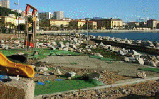 La place Miot, très fréquentée par les Ajacciens et leurs enfants, située entre la plage Saint-François et le Trottel, est principalement composée d’un skatepark, d’un grand square arboré avec des jeux d’enfant, d’un parking et de la Caserne Grossetti. Sur tout ce linéaire de 480m, se trouve une longue promenade piétonnière en béton, protégée par des talus en enrochements côté mer. Talus qui ont été déstabilisés par les dernières tempêtes, avec des vagues qui ont franchi significativement le haut des ouvrages, rendant dangereux les talus et dégradant les aménagements situés immédiatement en arrière (muret de protection, jeux pour enfants y compris les revêtements spéciaux, zones d’espace vert).