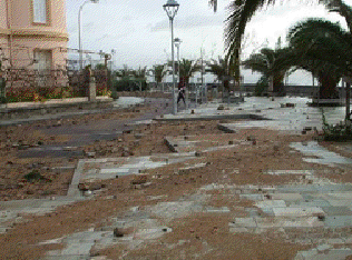 La place Miot constitue une avancée du littoral dans la mer, et de ce fait, la concentration de l'énergie de la houle incidente, est d'autant plus forte. Cette houle atteint les défenses, avec une hauteur et une force plus importante, d’autant plus que le fond devant le môle est plus profond. L'action d'affouillement de la houle en pied du talus raide est alors accentuée, ce qui entretient le déséquilibre.