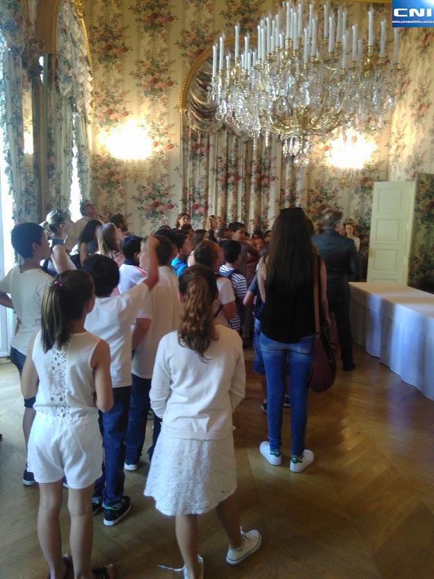 Accompagné de leurs institutrices (Mmes Paradis et Dumoulin pour les CM1 et CM2 de l’école des Jardins de l’Empereur et MmeDutin pour l’école Salines 6) et des inspecteurs de l’éducation nationale (Christiane Revest et Jean-Dominique Panicali) le groupe d’une trentaine d’enfants a pu explorer (sous le patronage de Jean-Yves Chapel délégué du préfet à la Politique de la Ville, faisant pour l’occasion office de guide de cette visite) et découvrir les essences rares (maclura auriantica, syagrus romanzofiana) regroupées en ce lieu, les éléments décoratifs offerts par l’impératrice Eugénie au Palais mais aussi le patrimoine décoratif et mobilier du grand salon.