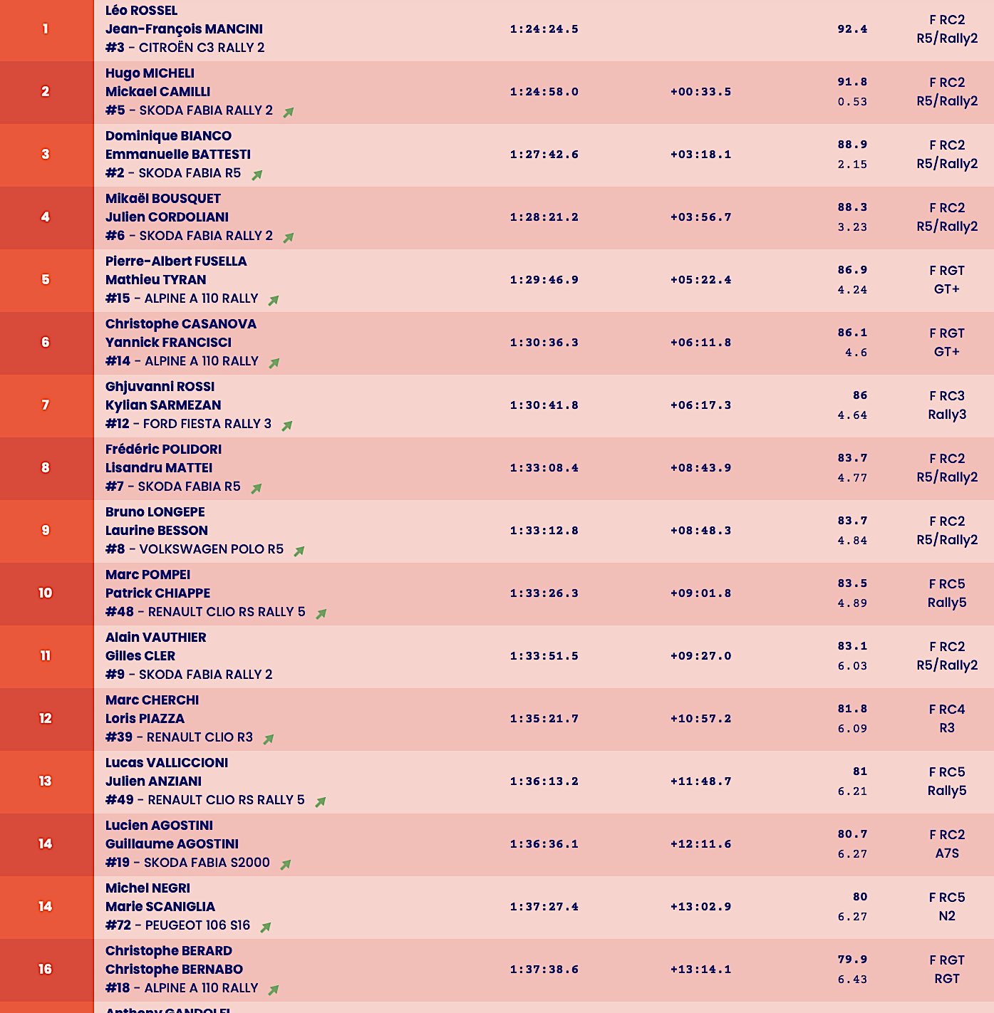 Certes Santini, audacieux, signait là le meilleur temps, se rapprochant un peu plus du leader, mais Micheli et Rossel, derrière à 7 secondes, avaient visiblement décidé de gérer leur fin de course, à l'image du reste des concurrents, pour rallier le parc fermé final de Bastia.