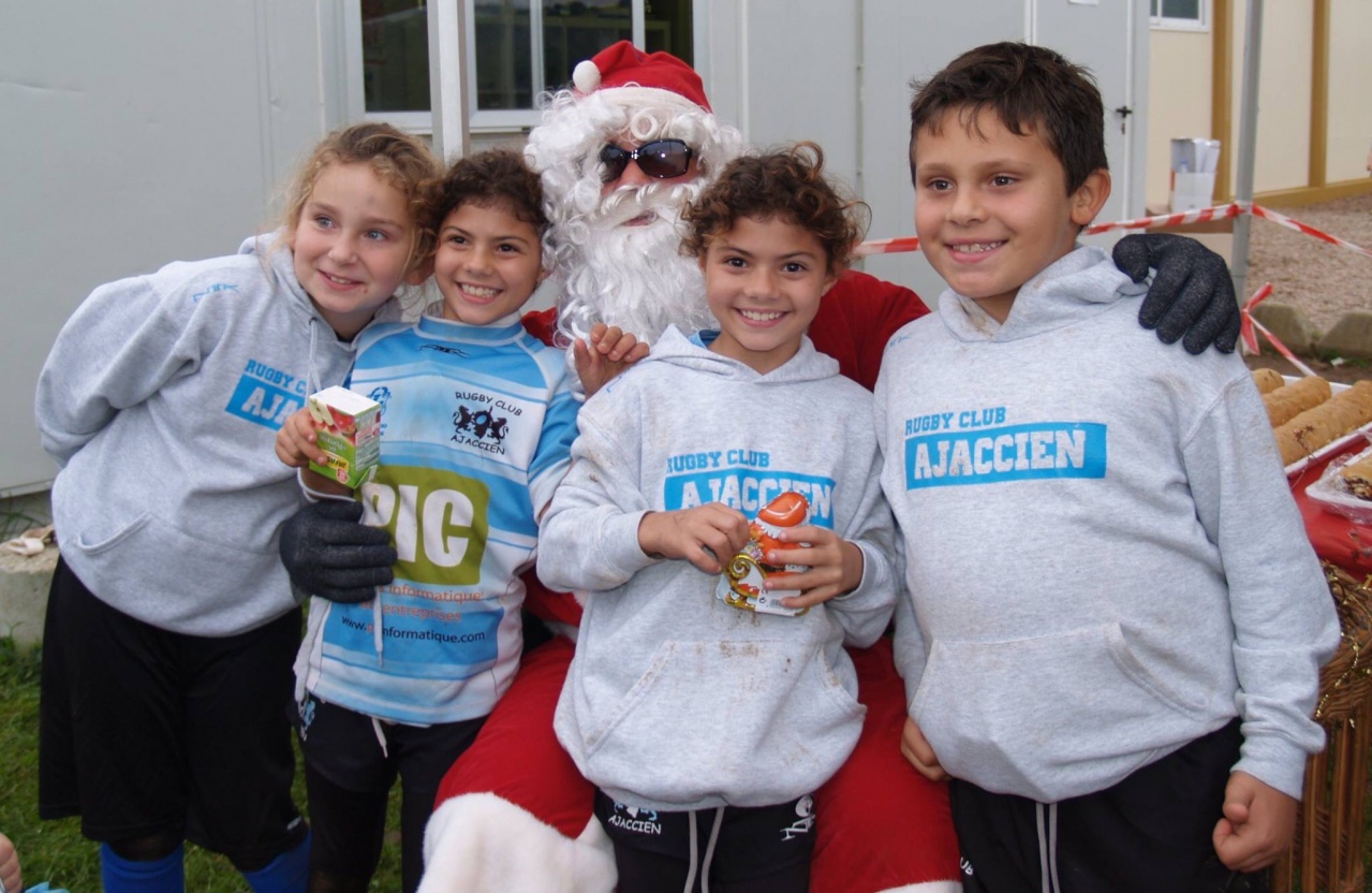 C’est ainsi, au son d’un célèbre « Babbucciu Natale », que le Père Noël est venu les féliciter avec la remise d’un trophée en chocolat et un gouter offert par le club hôte.