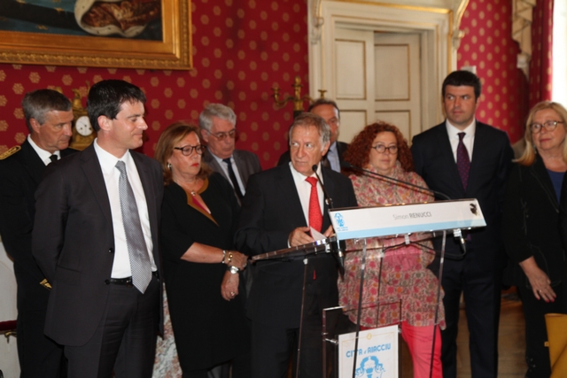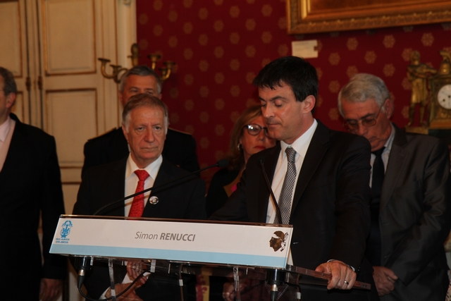 C'est au cours de la cérémonie de réception qui s'est déroulée mardi après-midi à la mairie d'Ajaccio, que le maire d'Ajaccio Simon Renucci s'est adressé au ministre de l'intérieur Manuel Valls. (Photo : Marilyne Santi)