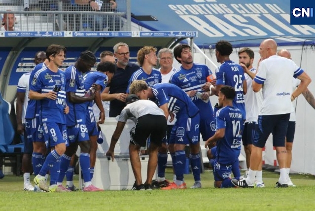 Le match avait pourtant bien commencé. Dominateurs durant la première demi-heure, les Bastiais se créent de nombreuses occasions. À la 12ᵉ minute, Félix Tomi manque l’ouverture du score : seul face au gardien, sa frappe passe à quelques centimètres du poteau. Maxime Blé se montre également remuant mais peine à trouver la faille, souvent signalé hors-jeu.