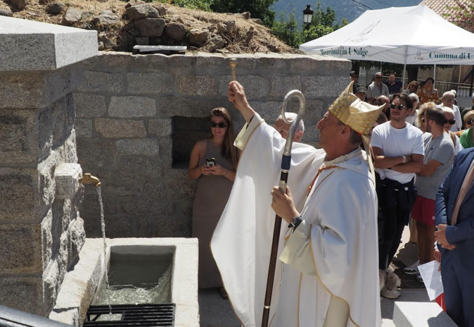Après la messe, le Cardinal Bustillo a béni la fontaine, tandis que résonnait le chant traditionnel Beata Funtanella, interprété par a scola di cantu di u Cruzinu. Jean-Pierre Giordani, maire de Salice, a profité de son discours pour remercier les entreprises ayant participé à la rénovation de cette fontaine, ainsi que les bénévoles, soulignant l'importance de cette journée pour la mémoire collective du village.