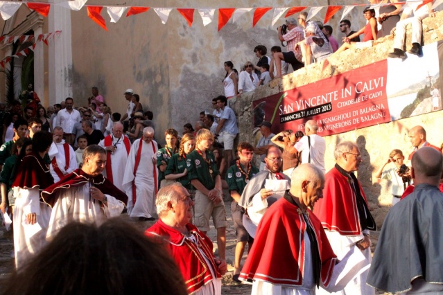 La messe à laquelle participaient Ange Santini, maire de Calvi, et l'ensemble des vignerons de Balagne ainsi que de très nombreux pélerins était suivie de la procession avec Saint Vincent porté par des scouts, vignerons et fidèles.