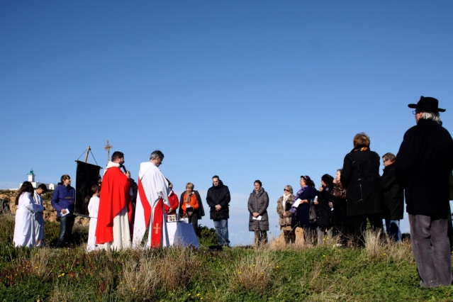 La sortie en mer étant annulée, les fidèles reprenaient leur procession en direction de l’île de la Pietra où le père Marcin Monka allait présider la messe concélébrée avec le diacre Thierry Del Piero .