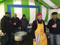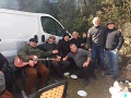 Sur le coup de midi, les groupes se forment autour du site. Après la messe, des dizaines de personnes se retrouvent pour entrer de plain-pied dans la tradition. Apéritif, charcuterie, beignets au Brocciu et fritelle, sans les grillades cette fois, sauf pour ceux qui avaient prévu de remplacer le traditionnel feu par une plancha…Sur place, et cela fait aussi partie de la tradition, il se trouve toujours un musicien pour accompagner un chanteur occasionnel. Parmi les nombreux stands des familles qui retrouvent les mêmes endroits pour se réunir, celui des « Pescadore in Festa » a été pris d’assaut au milieu de la matinée. Tout avait été prévu pour suppléer au figatellu avec, au menu de ces retrouvailles, un plantureux casse-croûte.