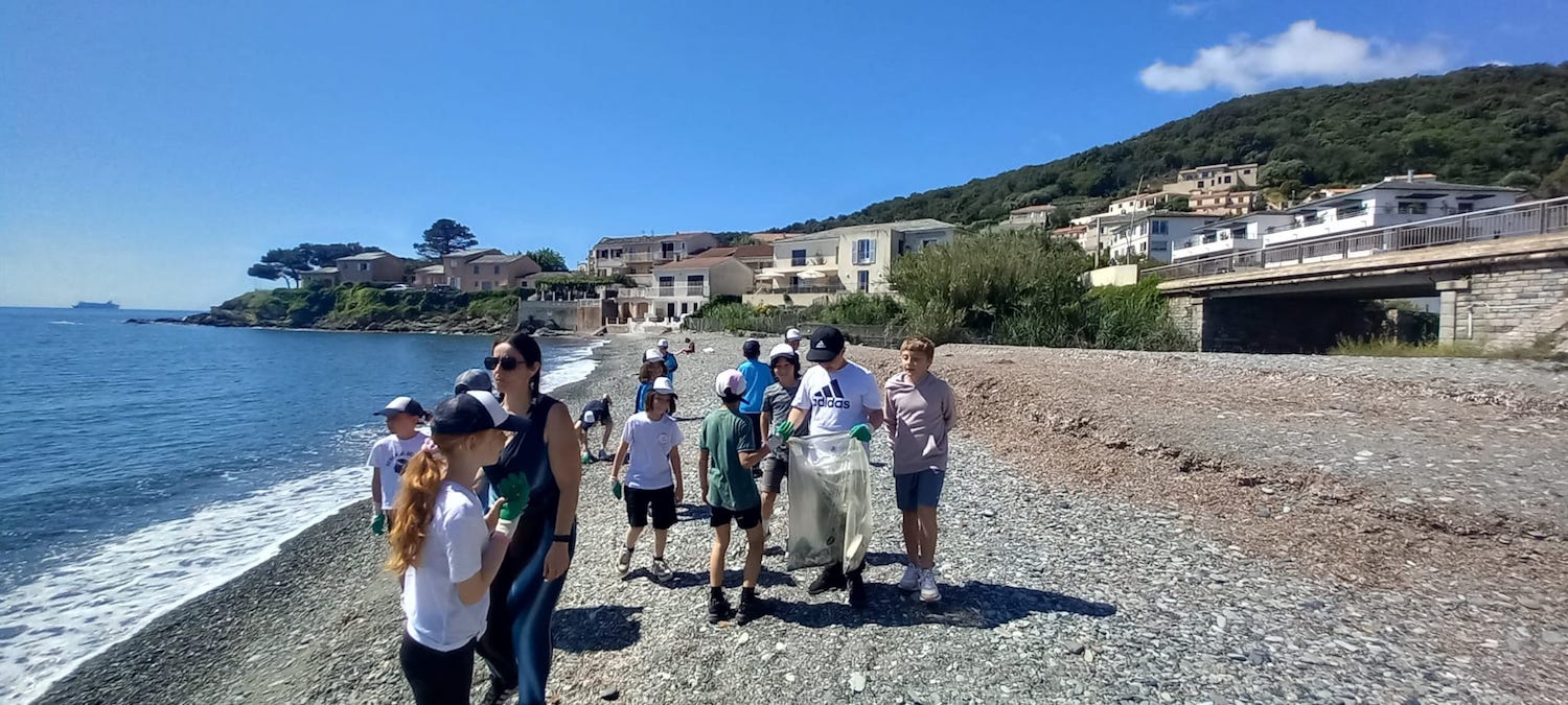 Les élèves de l'école de Santa-Maria-di-Lota ramassent les déchets et les mégots sur la plage, vendredi 24 mai 2024.