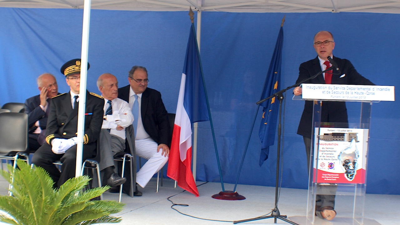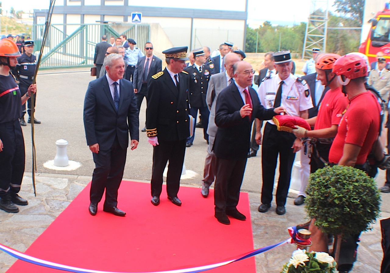 Accueilli par Alain Thirion, préfet de Haute-Corse, le colonel Charles Baldassari, directeur du service départemental, François Orlandi, président du conseil départemental de Haute-Corse et du conseil d'administration du Sdis et Paul Giacobbi, président du conseil exécutif de Corse, Bernard Cazeneuve a d'abord passé en revue l'ensemble des personnels rassemblé dans la cour du service départemental.
