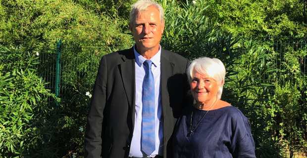 Jean-Marie Séité, maire de Galeria, et de Charlotte Terrighi, maire de Vignale, candidat de droite et sa suppléante à l’élection sénatoriale de Haute-Corse.
