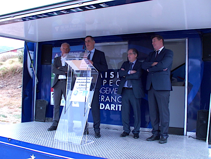 Direction ensuite Volpajo dans la zone industrielle d’Erbajolo pour une inauguration en grande pompe en présence François Ravier, préfet de la Haute Corse, Gilles Simeoni, président de l'Exécutif de la CdC, des députés Michel Castellani et Jean-Félix Acquaviva, des maires de Bastia, Furiani, Borgo… et bien sûr de la grande famille du football corse.
