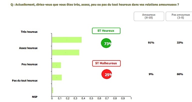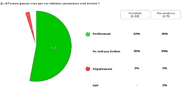 "Etre amoureux c’est bien, mais être heureux dans sa relation, c’est mieux. Peu d’amour torturé ou déçu, 73% des personnes interrogées sont épanouies dans leur relation.