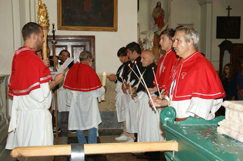 Durant cette belle cérémonie, six nouveaux confrères ont été intronisés, pour Santa Croce, MM François-Joseph Guglielmi, Nicolas Pierre et Paul Andreani. Pour Sant’Antone Abbate, MM. Guy Anneli, Guillaume Barain et Anthony Marcelli. Comme l’explique Pierre Dottori, prieur de Santa Croce : « Nos trois novices avaient déjà été préparés et c’est donc nos trois confrères de Sant’ Antone Abbate qui durant l’heure qui a précédé la messe, ont du se sacrifier au rituel “di a Vestitura”, qui consiste à recevoir l’Abitu (l’Aube blanche), le cordon et la cagoule. ». Puis de préciser : « Des lectures et des chants suivent ce rituel et il est alors demandé aux novices de bien vouloir accepter le règlement intérieur de leur confrérie et également de servir la messe et participer aux offices ».