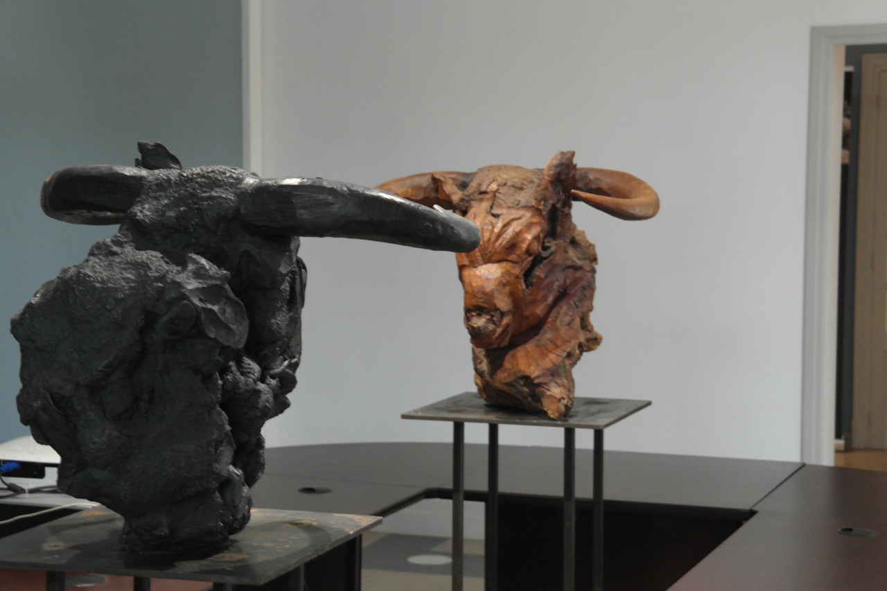 Lorsque Stéphane Deguilhen rentre en Corse, il préfère aider un ami à préparer du bois de chauffage, qu’ils vont débiter en forêt. Des souches qu’il récoltera, il en récupérera une qui sera le point de départ d’une forme de communication entre lui et le végétal. Le sculpteur y voit une tête de taureau, et travaillera très peu la souche, pour lui faire révéler son anamorphose. Il y rajoutera uniquement les cornes. La tête de taureau donnera le « la » de la symphonie qui traverse le végétal, l’animal, le minéral. Viendront ensuite les aigles, jusqu’à cette dernière sculpture, particulière, plus aboutie, où rien n’est ajouté : une souche au premier coup d’œil, qui devient une tête de tigre lorsque l’observation se prolonge. « J’interprète la forme préexistante d’une souche en intervenant le moins possible ».