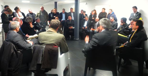 En fin d’après-midi, Stéphane Le Foll change de registre et se rend au domaine vinicole Vico où il est accueilli par le propriétaire du lieu, Jean-Marc Venturi, également président délégué de la chambre d'agriculture de Haute-Corse. La visite du chai est l’occasion de faire le point sur la viticulture corse et le travail de reclassement du vignoble insulaire, entrepris il y a 17 ans et qui est en passe d’aboutir auprès de l’INAO (Institut national de l’origine et de la qualité). Le ministre s’entretient, ensuite, pendant près d’une heure, avec les responsables de filières végétales, notamment sur les problèmes phytosanitaires. Les représentants de la filière oléicole et castanéicole reprochent à l’Etat son laxisme, son manque d’écoute et son refus de prendre les mesures idoines pour prévenir les épidémies de cynips et de xylella fastidiosa. Le ministre tente, encore une fois, de rassurer : « C’est un problème phytosanitaire qui nous concerne tous. Il faut qu’on arrive à le régler. La question se traite à l’échelle européenne. Nous avons demandé une réunion. Elle se tiendra à la fin mois. Il faut faire pression sur les Italiens ! ». L’étape ministérielle du Centre Corse se conclut autour d’un dîner de travail avec les représentants de la profession agricole et des élus. Vendredi, la visite se poursuit et s’achève en Corse-du-Sud.
