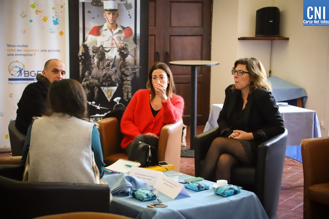 Tant de questions qui ont trouvé réponses grâce à la qualité des intervenants : Mme Vanessa Chiemcik de Pôle Emploi, Mme Cathy Castellani de la Chambre de Commerce et d'Industrie, M. Serge Palandri de la Chambre des Métiers et de l'Artisanat, M. Raphaël Benda, cadre dirigeant chez AXA France, Mme Valérie Buttafoghi, Ambassadrice de chez Younique et Cap Beauty, Mme Sandra Marchetti du BGE et M. Florian Cochet de la Couveuse d'Entreprise de Corse, le Caporal-chef Oliveira, photographe, Yasmina Ciobaca de Châtaigne et Clémentine, Astrid Boyard de Baptême Box.