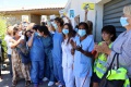 En quelques minutes ils étaient plus d'une quarantaine à former une haie et applaudir longuement le personnel soignant.