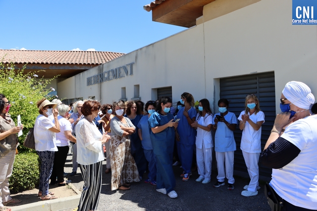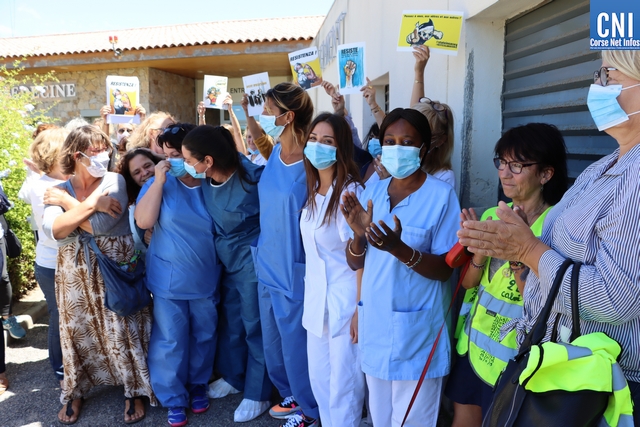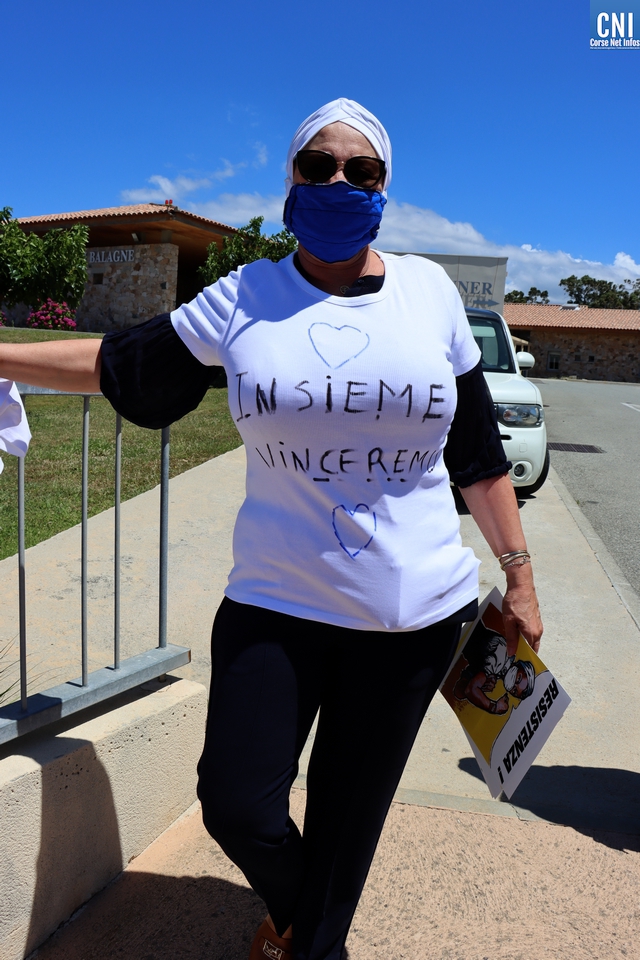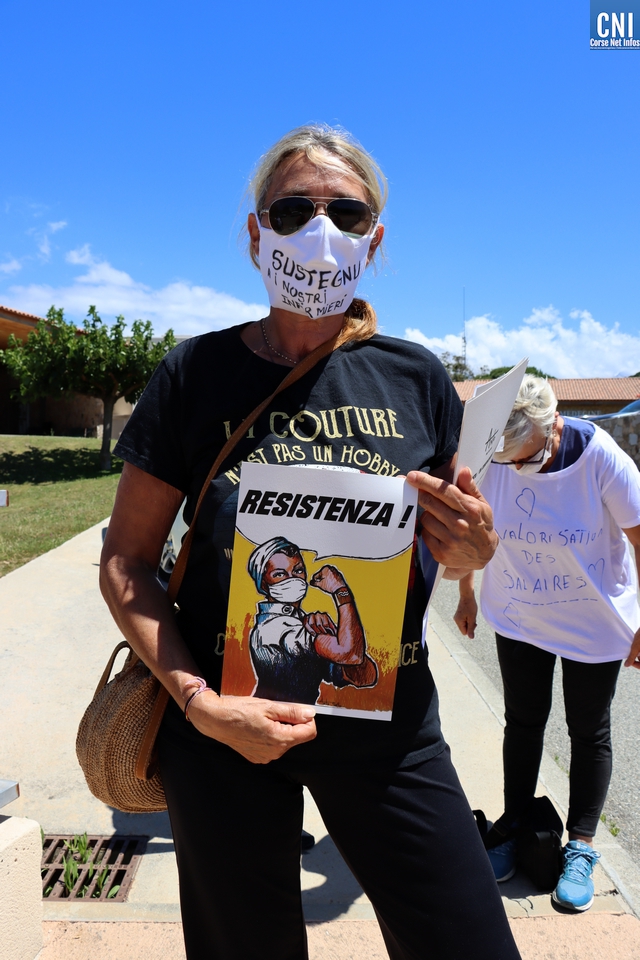 Sur le masque d'une participante à ce rassemblement on pouvait lire: " Sustegnu a i nostri infirmieri". Cette dernière avait des mots très durs envers le président de la République et le gouvernement sur la gestion de cette crise et sur la manière dont était traité le personnel soignant. Elle brandissait ensuite une enveloppe "Resistenza" et saluait l'auteur "AnTo filsdepop" dont on ne dira jamais assez ce qu'il a pu faire durant le confinement, notamment au micro de Radio Calvi Citadelle sont il en est l'animateur et cheville ouvrière".