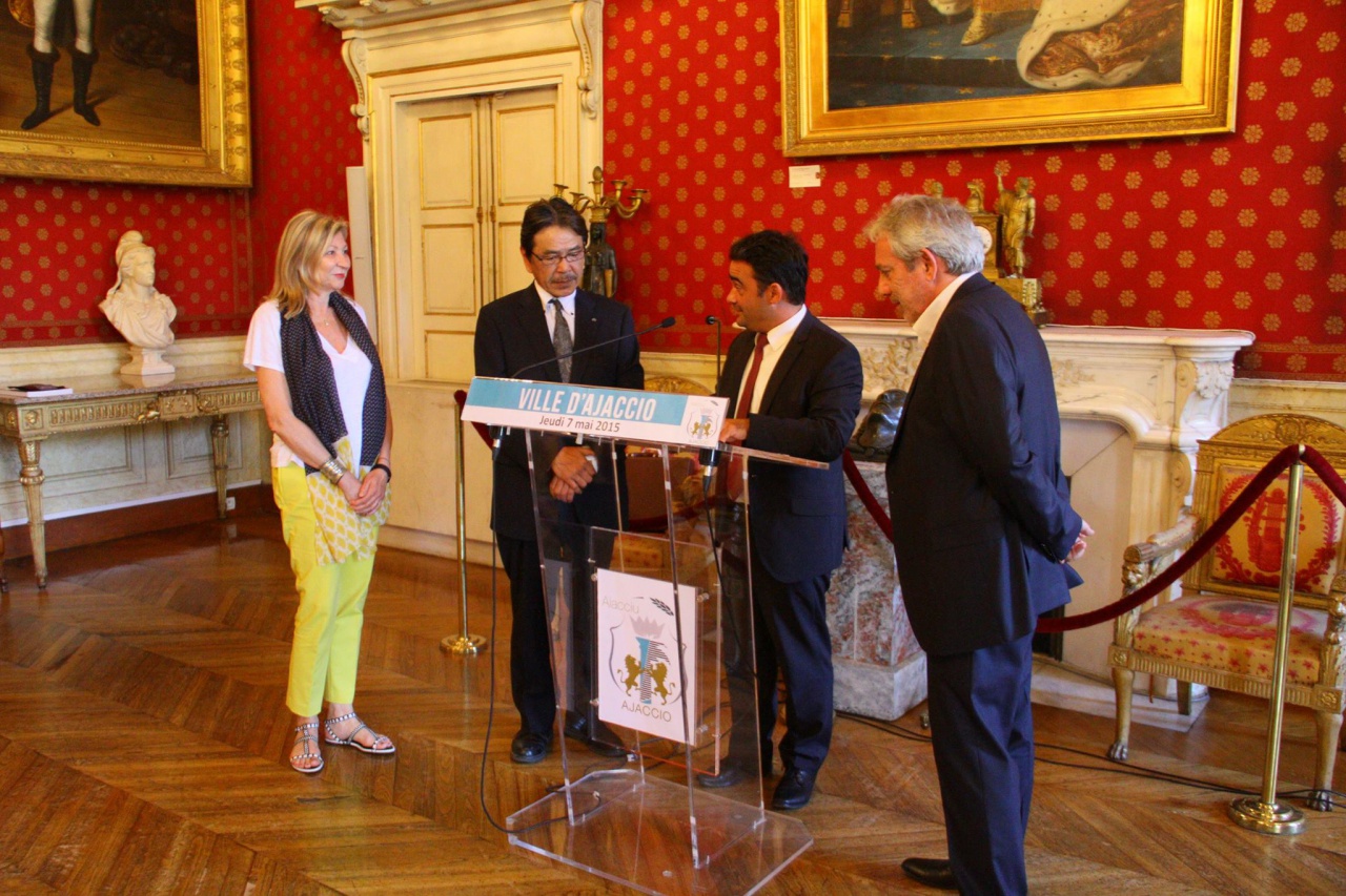 Après avoir échangé quelques présents, Philippe Perfettini attaché au Palais Fesch au département des peintures corses a entamé pour le consul général une visite guidée des salons Napoléoniens qui accueilleront bientôt une extension permettant de mettre en valeur un patrimoine plus important.