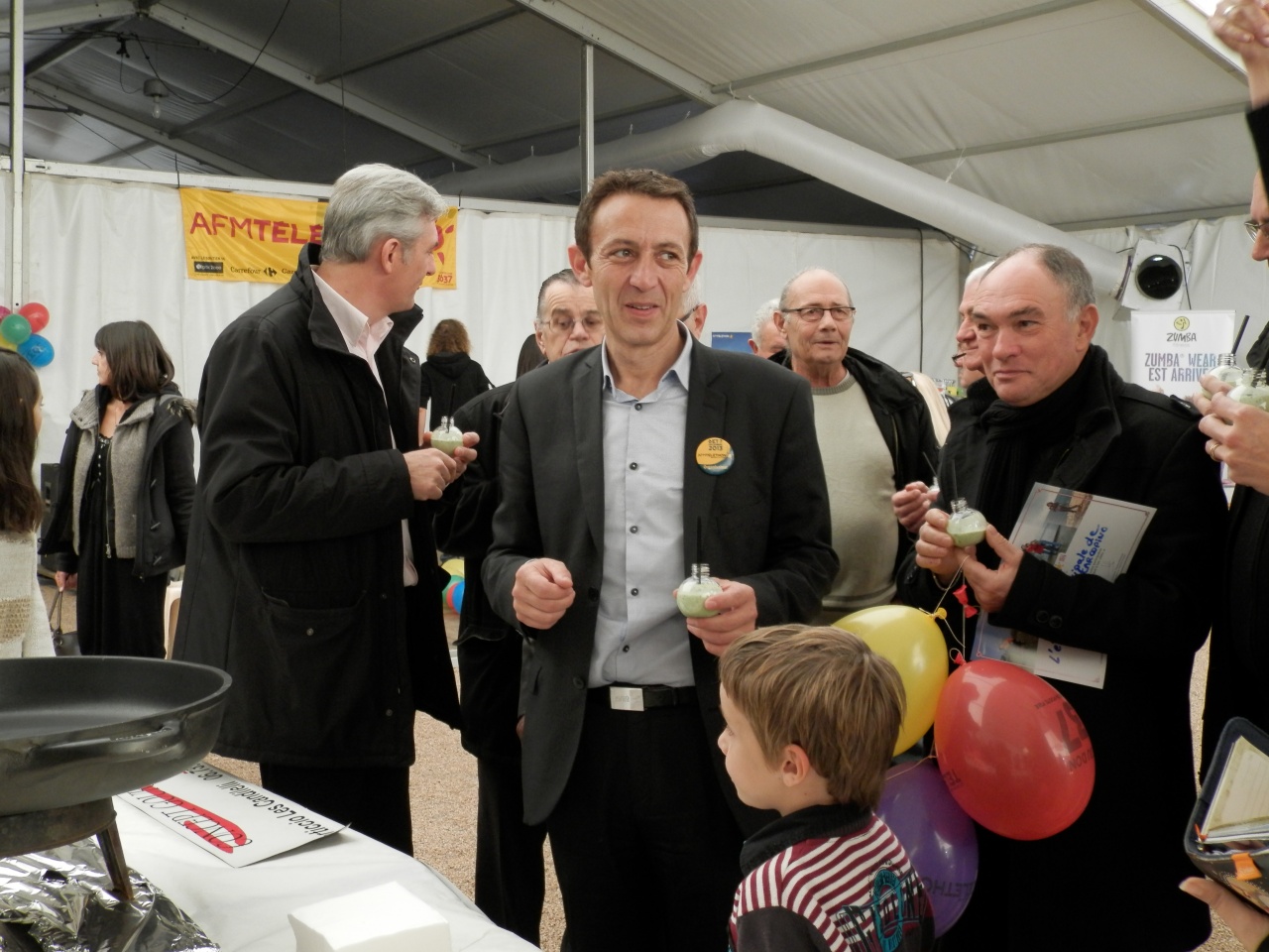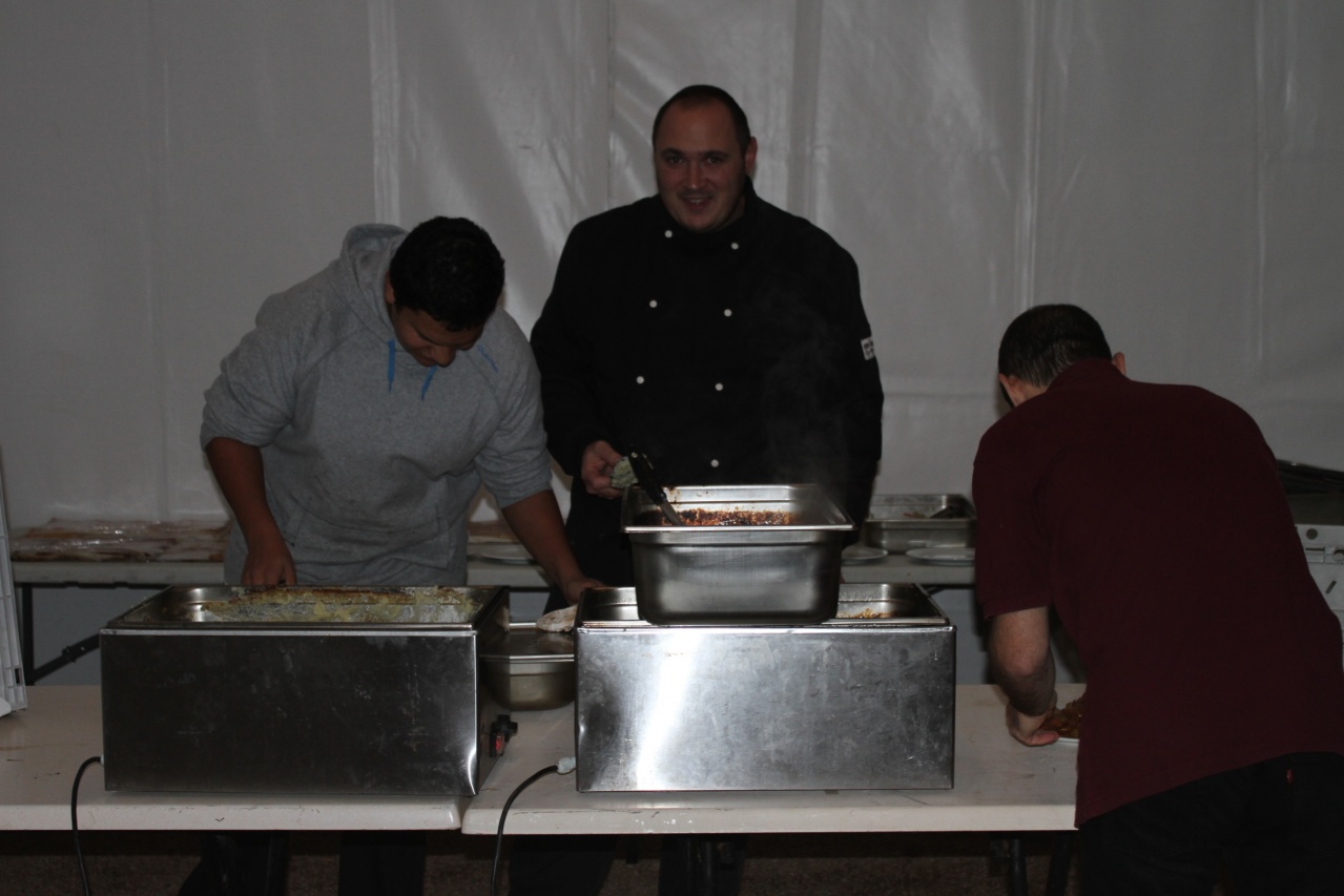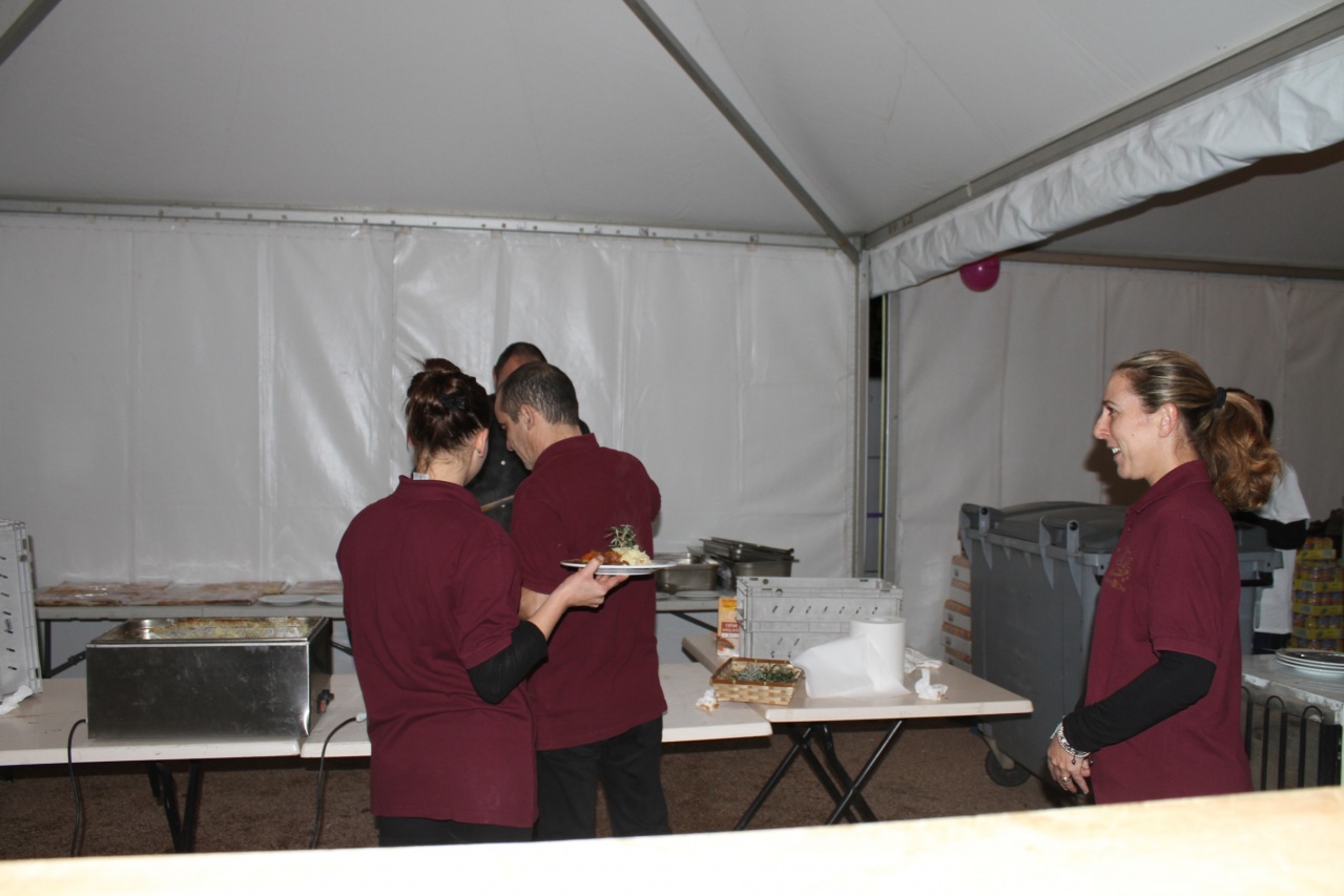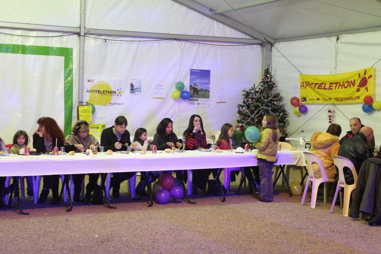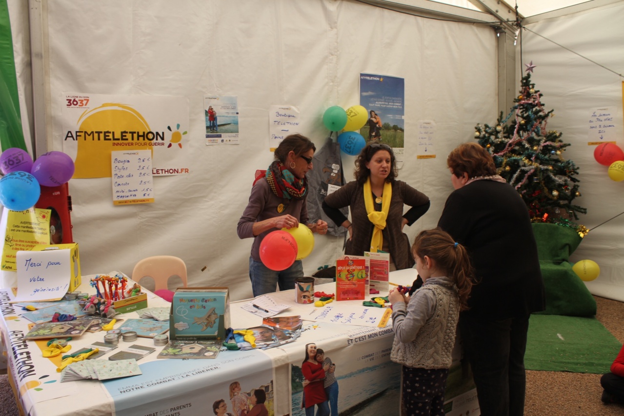 Le lendemain, journée principale du téléthon, alors que le compteur télévisuel tournait depuis plus de 12 heures, les premiers stands se mettaient en place sous le chapiteau. Des stands de vente d’objets divers (tableau, bijou, écharpes, bonnets….) mais aussi des stands d’alimentations comme les spécialités créoles préparées par l’association des « flamboyards » (qui fera plus tard dans l’après midi une démonstration de danses créoles ) ou les pâtes cuisinées par le traiteur « concept gourmand ».