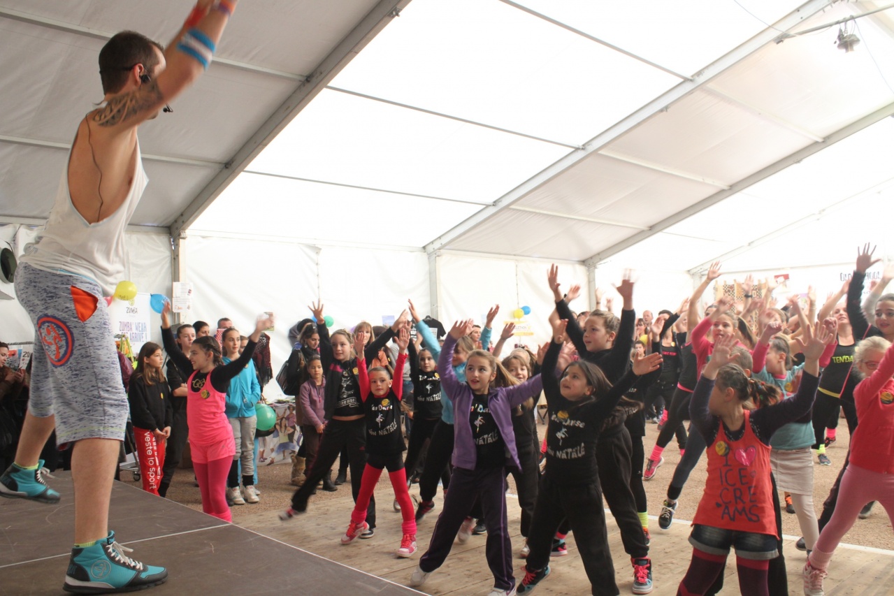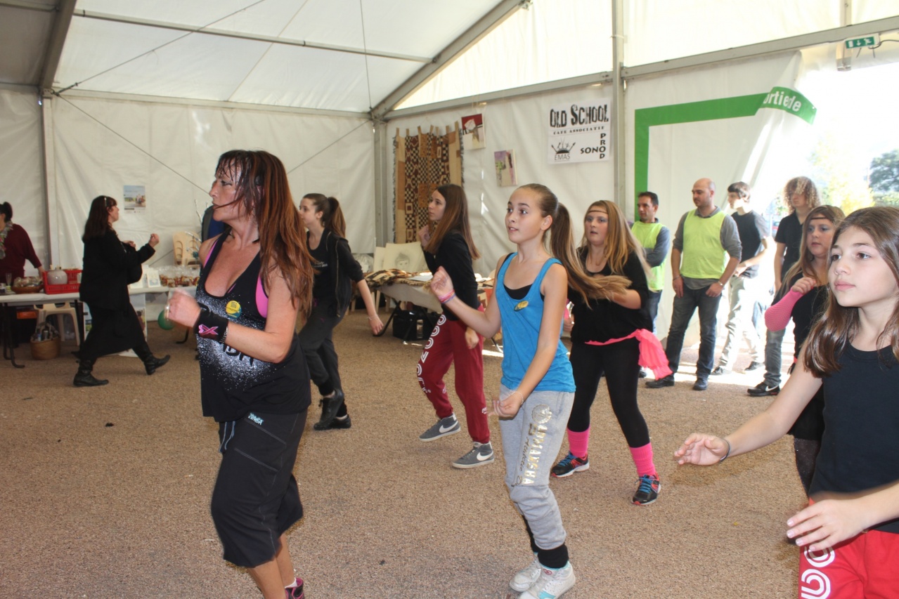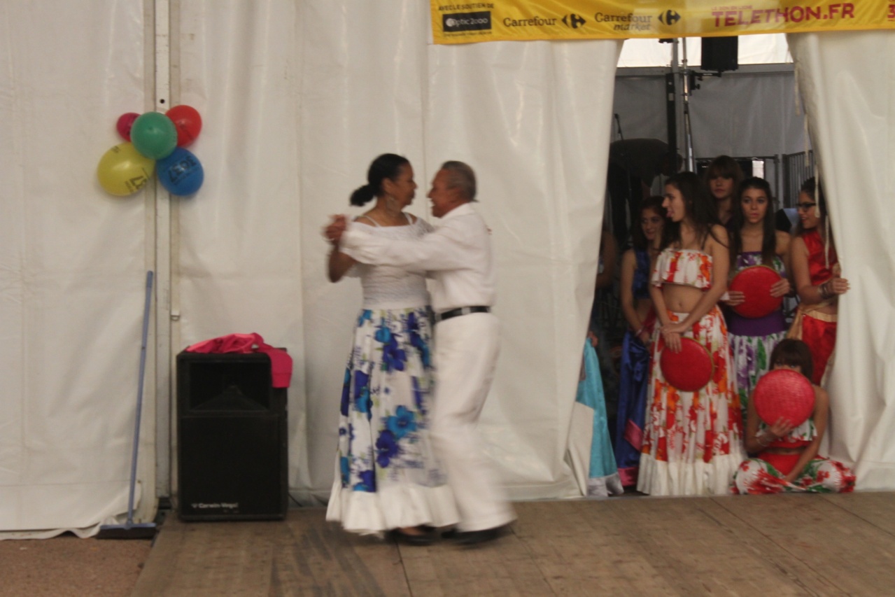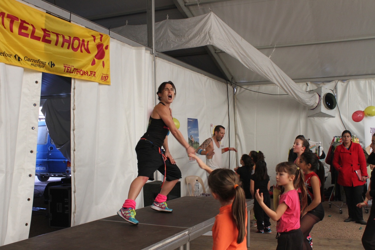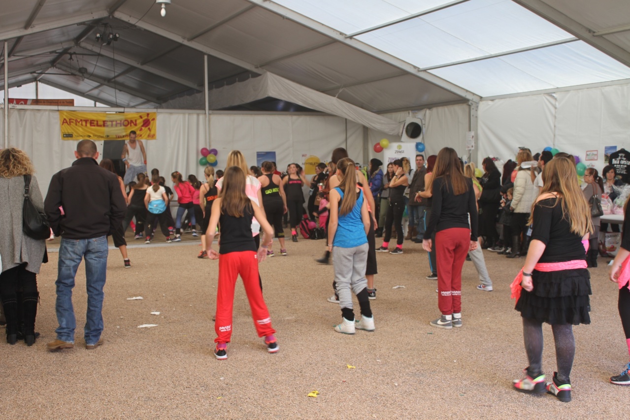Le stand officiel du téléthon bien sûr, mais aussi, dans leur coin, Marc Bernardin, professeur d’échec, membre de la ligue d’échec d’Ajaccio, et son épouse Martine, venus initier les débutants ou affronter les joueurs confirmés, pour la somme modique de 1 euro la partie reversée au téléthon. Mais le clou de la journée, attendu par beaucoup, a été le marathon /défi zumba orchestré et dirigé par Anthony Grasseli, de l’école de danse Tendanse à Ajaccio, et Flavie Perrier qui officie habituellement au Sagone Resort et à l’Urban Gym. C’est donc en tenus de « combat » que sont arrivées une centaine de demoiselles de 7 à … , pour relever ce défi de « zumber » pendant 3 heures. Un véritable succès pour cette nouvelle discipline très en vogue.