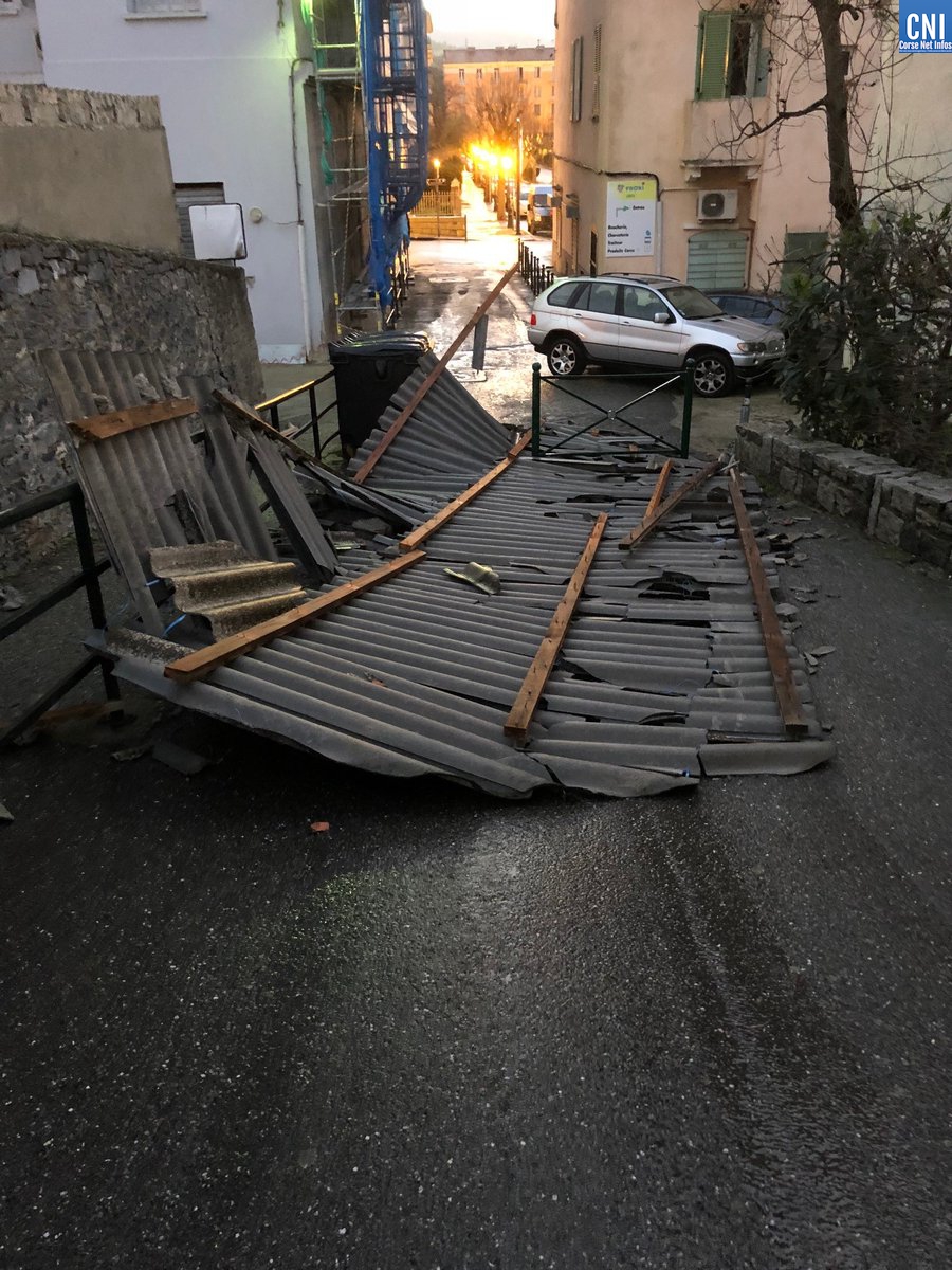 Le centre-corse n'a pas été épargné par la tempête. Corte notamment où le vent a soulevé une toiture qui s'est écrasée au sol. Des arbres ont été arrachés par le vent et du mobilier urbain a été descellé.