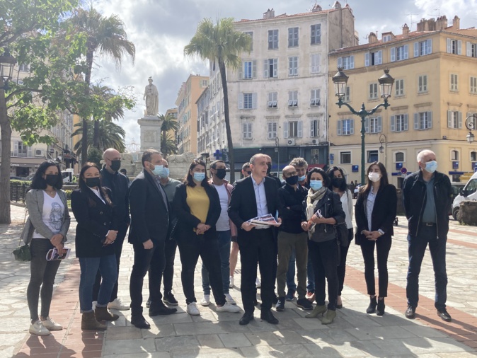 Ce mercredi 12 mai, Jean-Christophe Angelini a présenté les grandes lignes de son programme « L'Aghja nova è i so centu baroni », place des Palmiers à Ajaccio.