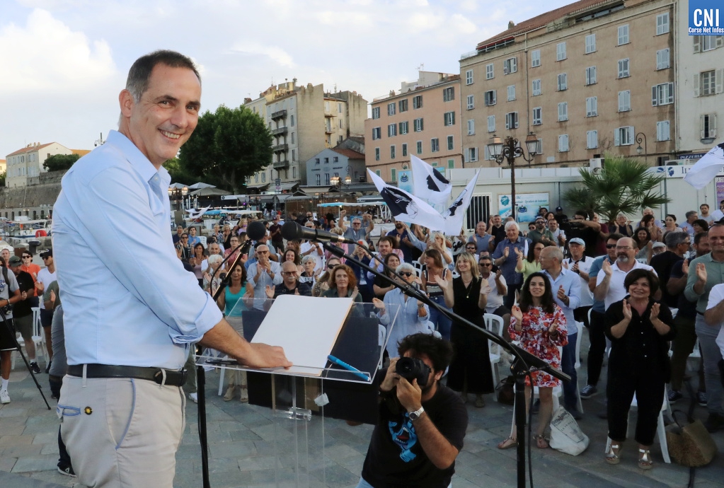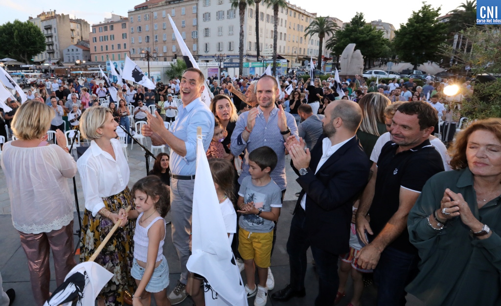 Une semaine, quasiment jour pour jour après Jean-Christophe Angelini pour la liste « Avanzemu », Gilles Simeoni, leader de la liste « Fà populu inseme » avait choisi le même décor – le port Tino Rossi - optant pour une ambiance assez similaire, comme théâtre de son premier meeting de clôture à quatre jours du second tour des élections territoriales.
