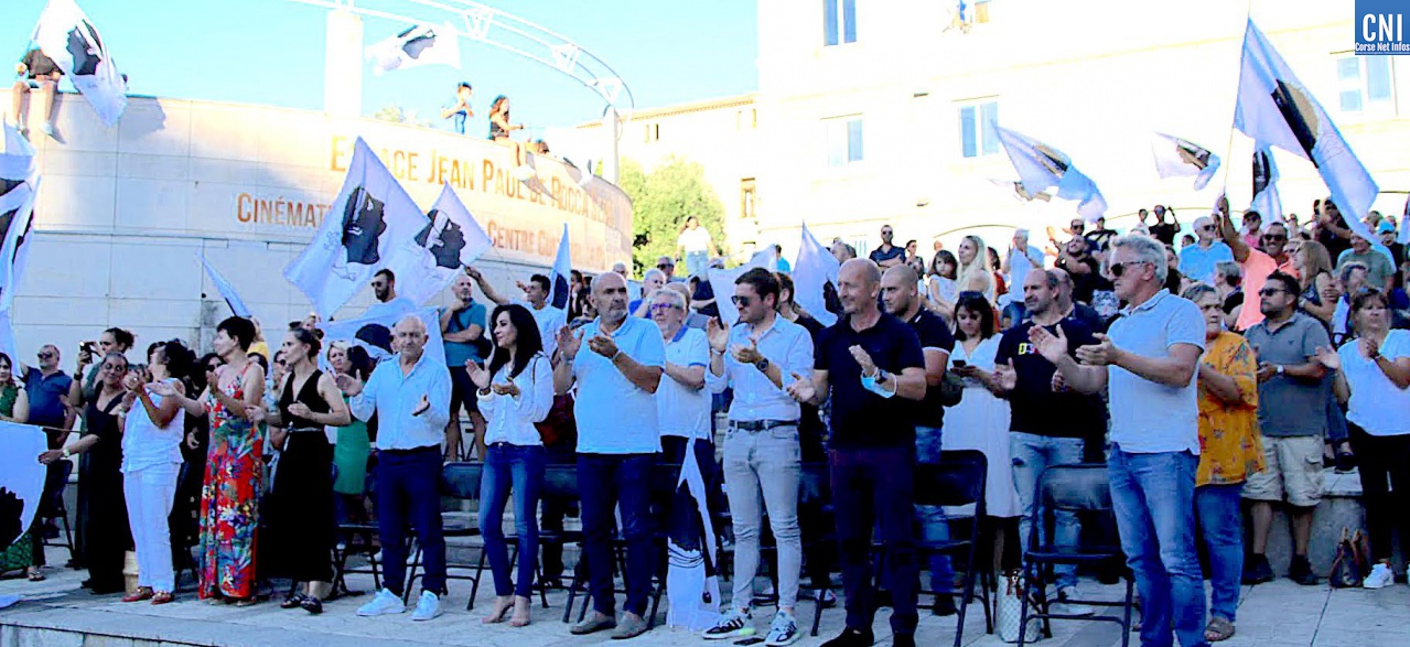 Après un hommage à Jean-Guy Talamoni, Josepha Giacometti a détaillé une fois de plus les raisons de la fusion entre Corsica Libera et le PNC : "Nous aurions dû être trois composantes à cette tribune ce soir à Portivechju, mais certains n'ont pas eu la volonté de reconstruire cette union. Pour notre part nous sommes sereins et dans le droit fil de 2015 et 2017. Nous avons répondu à l'appel de Jean-Christophe Angelini sans renoncer à rien de ce qui est notre identité, de ce que nous voulons pour ce pays. Nous disons ce soir que l'hégémonie est dangereuse et risquée pour le projet collectif. Nous avons devant nous une mandature longue de sept ans pour ancrer la Corse sur la voie de son émancipation et pour mener à bien tous les combats, et ils sont nombreux, qui sont liés à la culture, à la santé, au développement économique maîtrisé, mais aussi pour obtenir une solution politique".