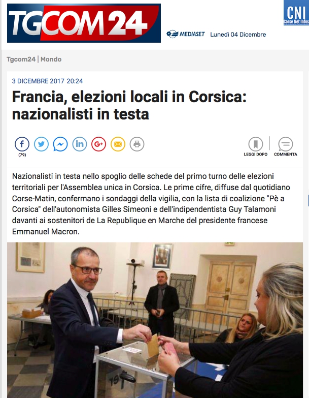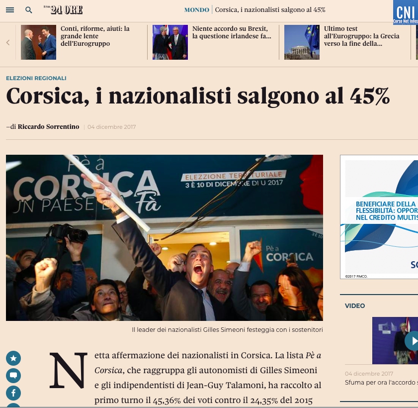 La chaîne de télévision italienne Sky TG 24, parle du « triomphe » du Nationalisme en Corse et du projet de statut spécial que Simeoni et Talamoni souhaitent pour l’avenir de l’ile.