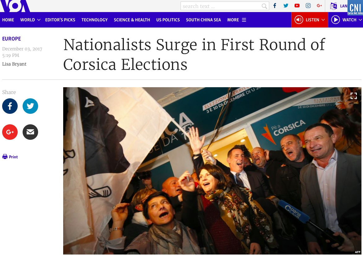 Même la télé suédoise SVT, sur son site internet, consacre un long reportage à la victoire des autonomistes « lauréats aux élections territoriales corses ».