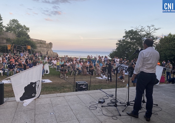 Au fil de son discours, le nationaliste ne prend pas de pincettes et galvanise sont auditoire : " Il est tout à fait légitime de penser qu'il pourrait y avoir un scrutin d'autodétermination pour que la Corse ait accès à un autre niveau statutaire. Celui de l'île de Malte ou celui de la Macédoine qui sont deux petits Etats latins et Méditerranéens. Alors pourquoi pas nous ? Est-ce un gros mot de dire que l'indépendance n'est pas une utopie ? Que c'est une réalité possible. Avant de poursuivre. Ne soyons pas inclus comme un appendice d'une autre collectivité territoriale. C'est pour cela que l'indexation même dans la constitution française a son importance. Ne pas être dans l'article-72 des autres régions, être à part ou ne pas y être du tout."