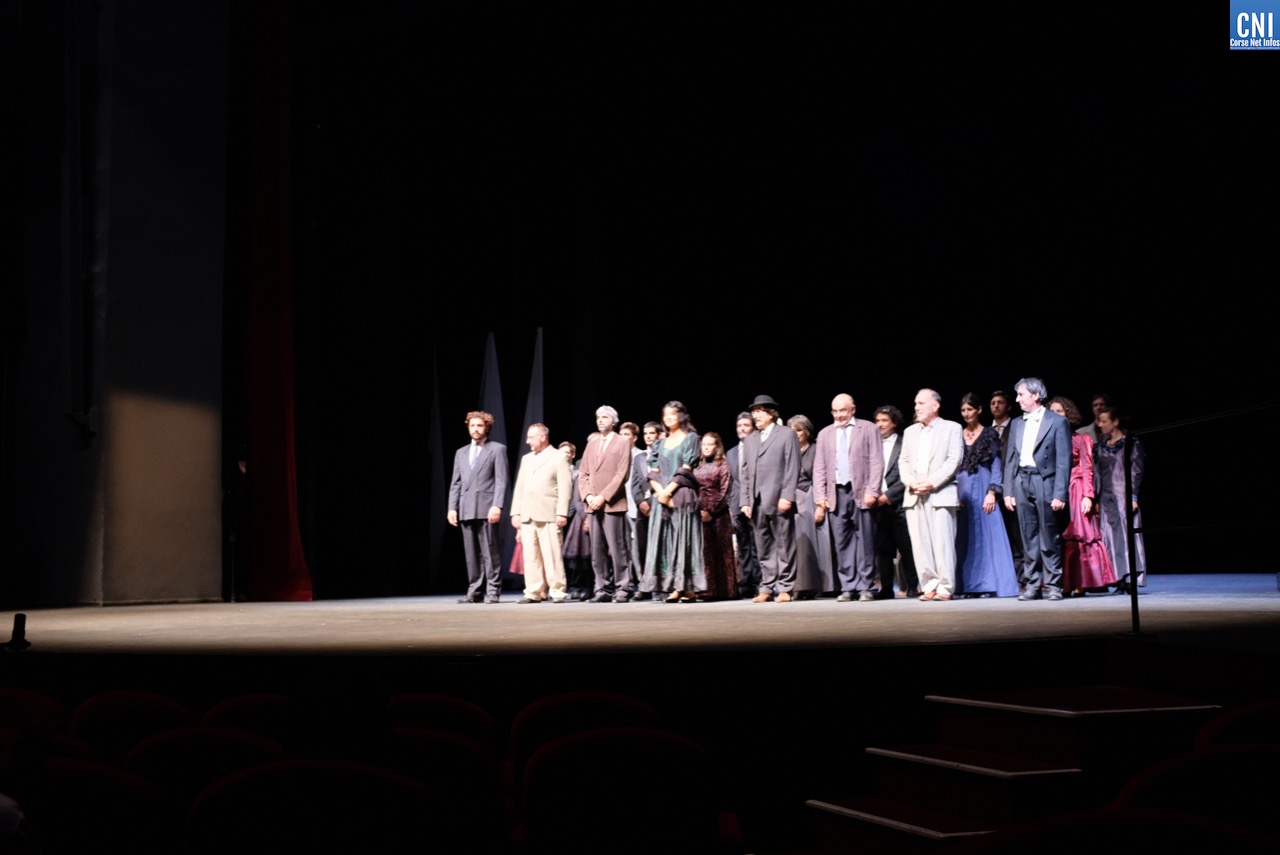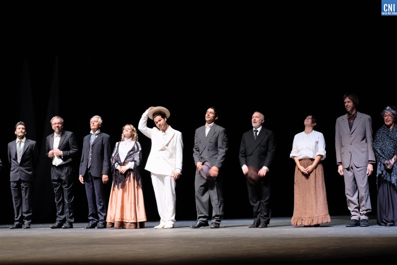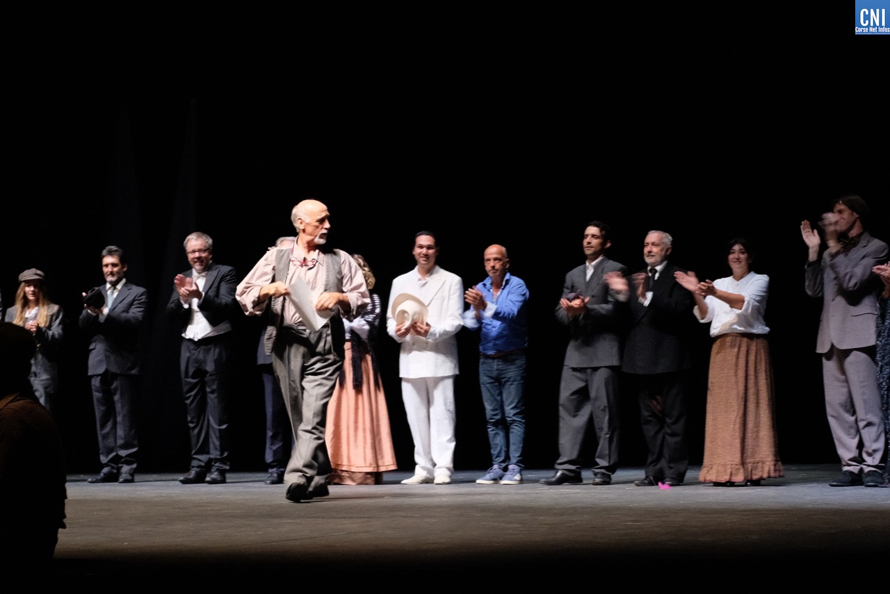 Les applaudissements sont fournis et les masques n’empêchent pas quelques « bravo » et « hourra » de s’élever de la salle. Sur scène, les nombreux interprètes défilent jusqu’à l’arrivée de Jean-Pierre Lanfranchi. « Ils l’ont fait ! » s’écrit un spectateur. La partie n’était en effet pas gagnée pour ce projet qui mêle habillement musique et théâtre autour de la vie du célèbre ténor César Vezzani (lire ici). Prévu en mars dernier, il fut un des premiers spectacles de la saison théâtrale de la Ville de Bastia a être annulé — puis reporté – pour cause de COVID19. Et jusqu’à quelques jours en arrière, les doutes étaient encore permis sur la tenue de l’événement, à l’heure où nombre de manifestation annoncent leur annulation et au moment où les instances dirigeantes serrent encore la vis (lire par ailleurs).