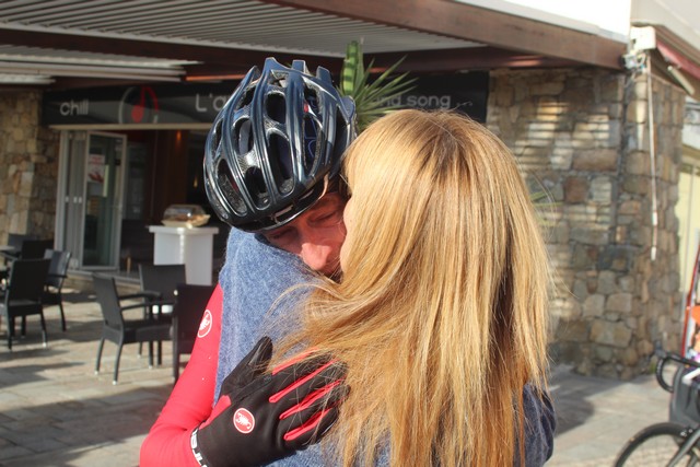Plutôt que de parler de son exploit, à sa descente de vélo, après avoir embrassé la famille, il préfère se diriger aussitôt vers ceux qui ont assuré son assistance et qui l'on aidé à tenir durant ces 24 heures. Difficile de citer tout le monde mais il y avait là "Bébé Almeras" complices dans la vie comme sur les terrains de foot, les frères Rancurel, Charles Fluxia, ses amis cyclistes du Calvi Xtri et bien d'autres.