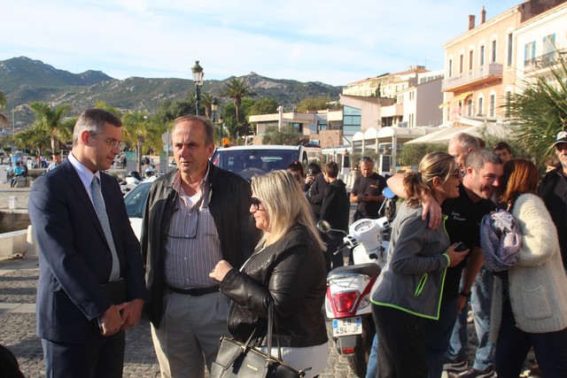 Salué par Jérôme Séguy, sous-préfet de Calvi, Maguy Brandaloni, conseillère municipale de Calvi représentant le maire Ange Santini, Pierre Guidoni, maire de Calenzana, "Pat" prend le temps de répondre aux sollicitations de la Presse.