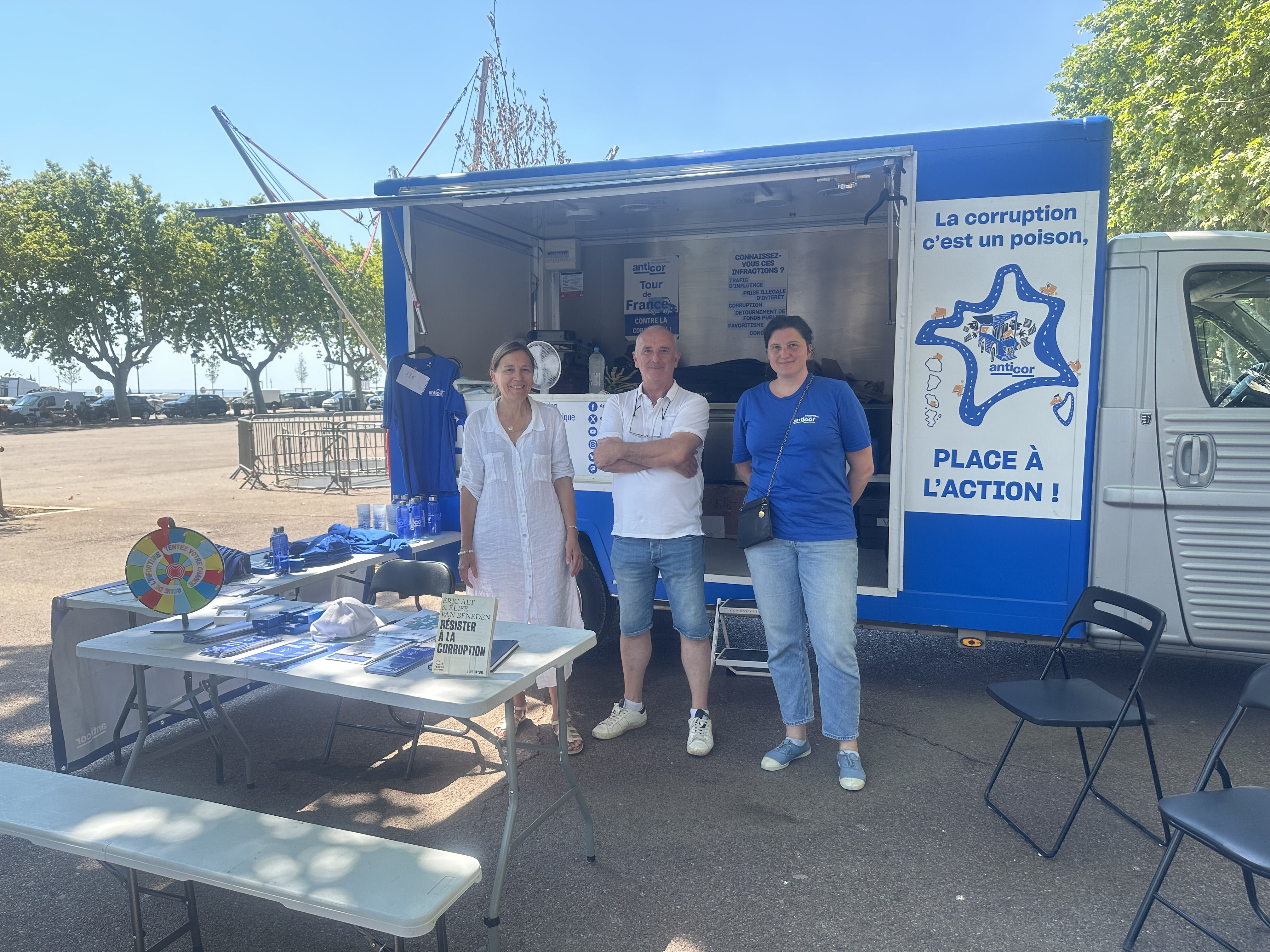 C’est une étape symbolique pour une association qui entend faire entendre sa voix sur l’ensemble du territoire. Ce jeudi 3 juillet, l’équipe d’Anticor a installé son stand place Saint-Nicolas à Bastia, dans le cadre de son premier Tour de France contre la corruption. Une tournée inédite à bord d’une camionnette transformée en outil de sensibilisation mobile, partie début juin des départements de l’est de la France. Après l’Aveyron, le Gard, la Drôme, l’Ardèche ou encore le Var, l’escale corse prend un relief particulier. “On voulait absolument venir en Corse. C’est un territoire où les atteintes à la probité sont plus fréquentes qu’ailleurs, mais aussi un endroit où les citoyens montrent une vraie volonté de comprendre et d’agir”, explique Nadia Mordelet, administratrice de l’association.