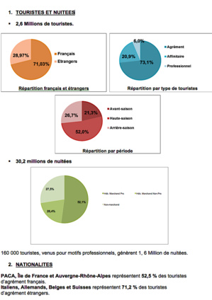 - Nationalités : 71,8% de touristes sont Français et 28, 2% viennent de l’étranger