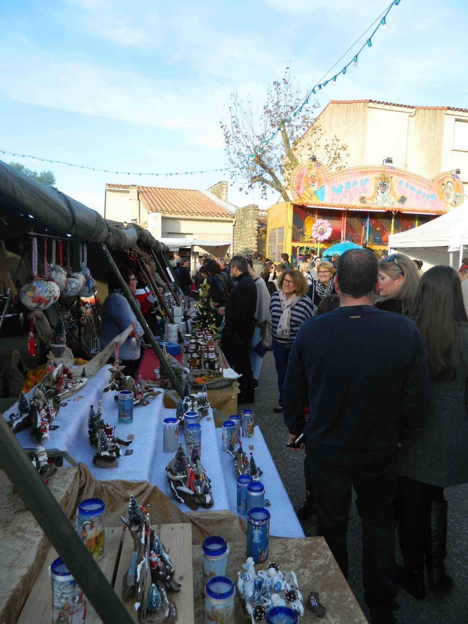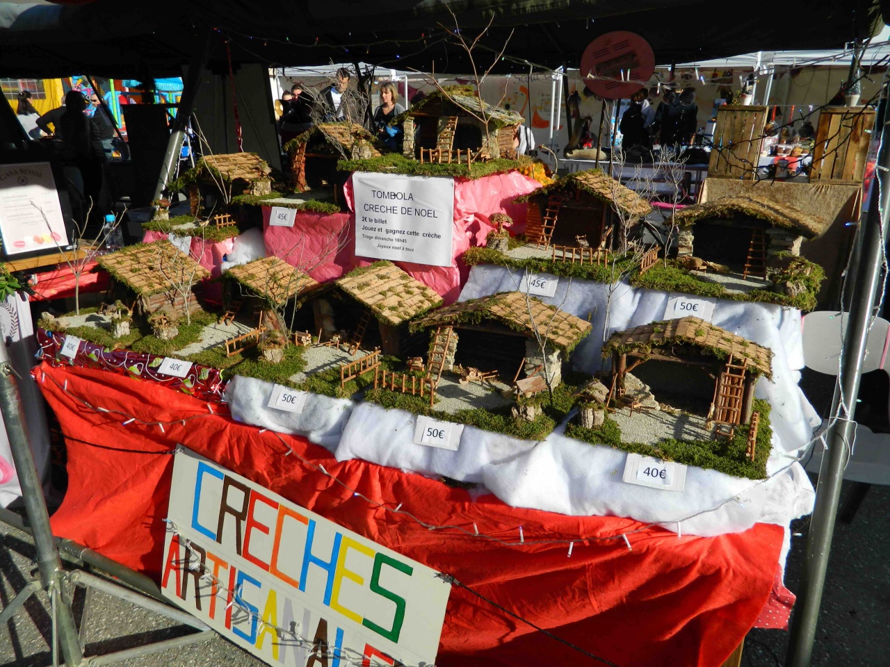Sous les chapiteaux blancs, les artisans et exposants proposent au public leurs créations artistiques aussi diverses que variées. Bijoux, crèches magnifiques en bois ou en cuir dont l'une d'entre elles était d'ailleurs à remporter au tirage d'une loterie, produits de beauté et de bien être, bougies, cadres , livres, jeux , créations de toutes sortes, sans oublier les charcuteries, les vins, fromages et confitures, se côtoient le temps d'un week end pour éclairer le visiteur sur une idée particulière de cadeau le jour de Noël , un jour qui arrive sans délai.