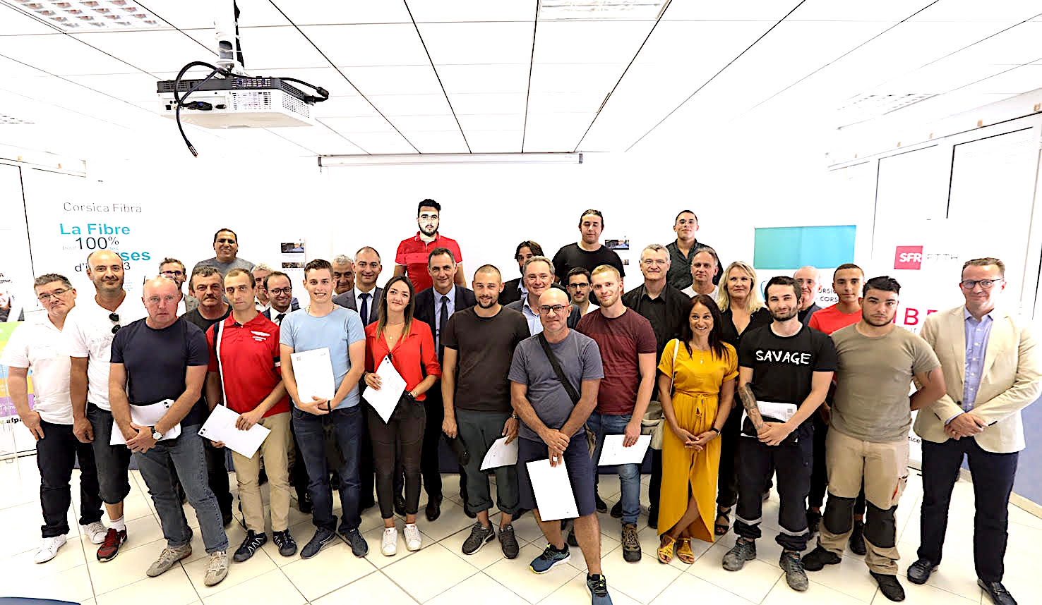 En partenariat avec SFR, l’AFPA de Corti et le CFA d’Aiacciu se sont engagés dans la mise en place d’un programme de formation spécifique aux métiers de la fibre optique grâce à la mobilisation de tous les acteurs et notamment de l’Ecole de la Deuxième Chance (E2C) de Bastia, des Plombiers du Numérique, de Pôle emploi, de l’Opca Constructys Paca-Corse, des Missions Locales et des entreprises en demande.