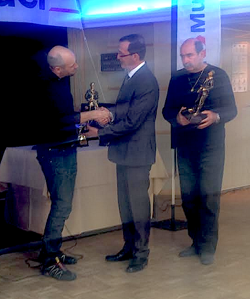 Jean-Jacques et Dominique Beovardi : deux athlètes d’une autre planète tellement les performances réalisées sont exceptionnelles ces dernières années. Ils ont surmonté la dernière née des disciplines du Jiu-Jitsu, le « duo show » et remporté la médaille d’or aux championnats du monde qui se sont déroulés à Bangkok. Ils ont également été sacrés champions de France. Absents pour cause de démonstration, c’est leur Kiné qui a récupéré leur trophée remis par Etienne Festa, de la future agence de Baleone du Crédit Mutuel.