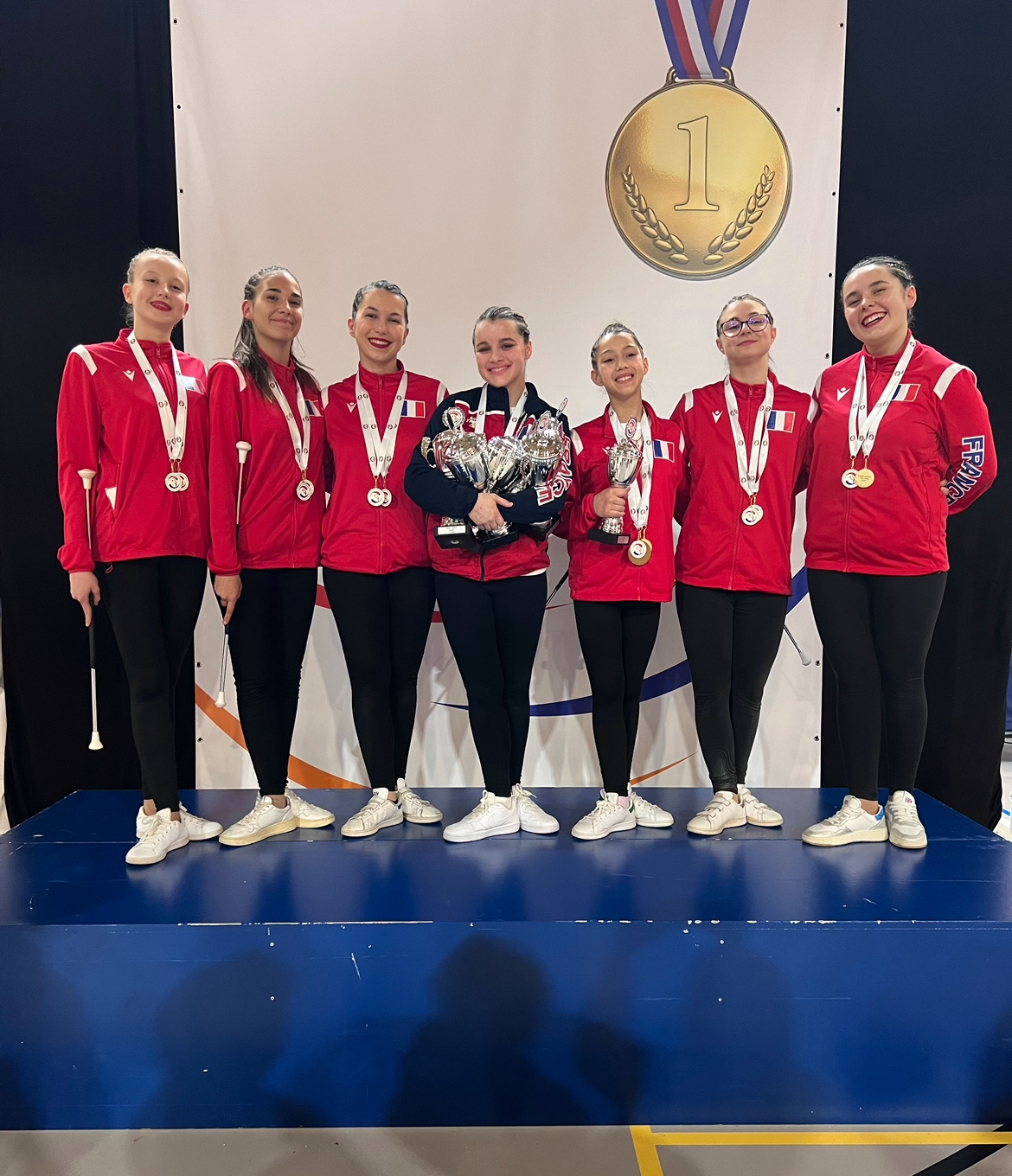 En équipe, les juniors Francesca-Maria Biaggi, Elisa Cristofini, Francesca Dottel, Livia-Maria Fulbert, Lia-Maria Giovannoni, Julie Legato et Laura Rossi ont conquis la médaille d’or en twirling libre, ainsi que la médaille d’or en danse imposée.