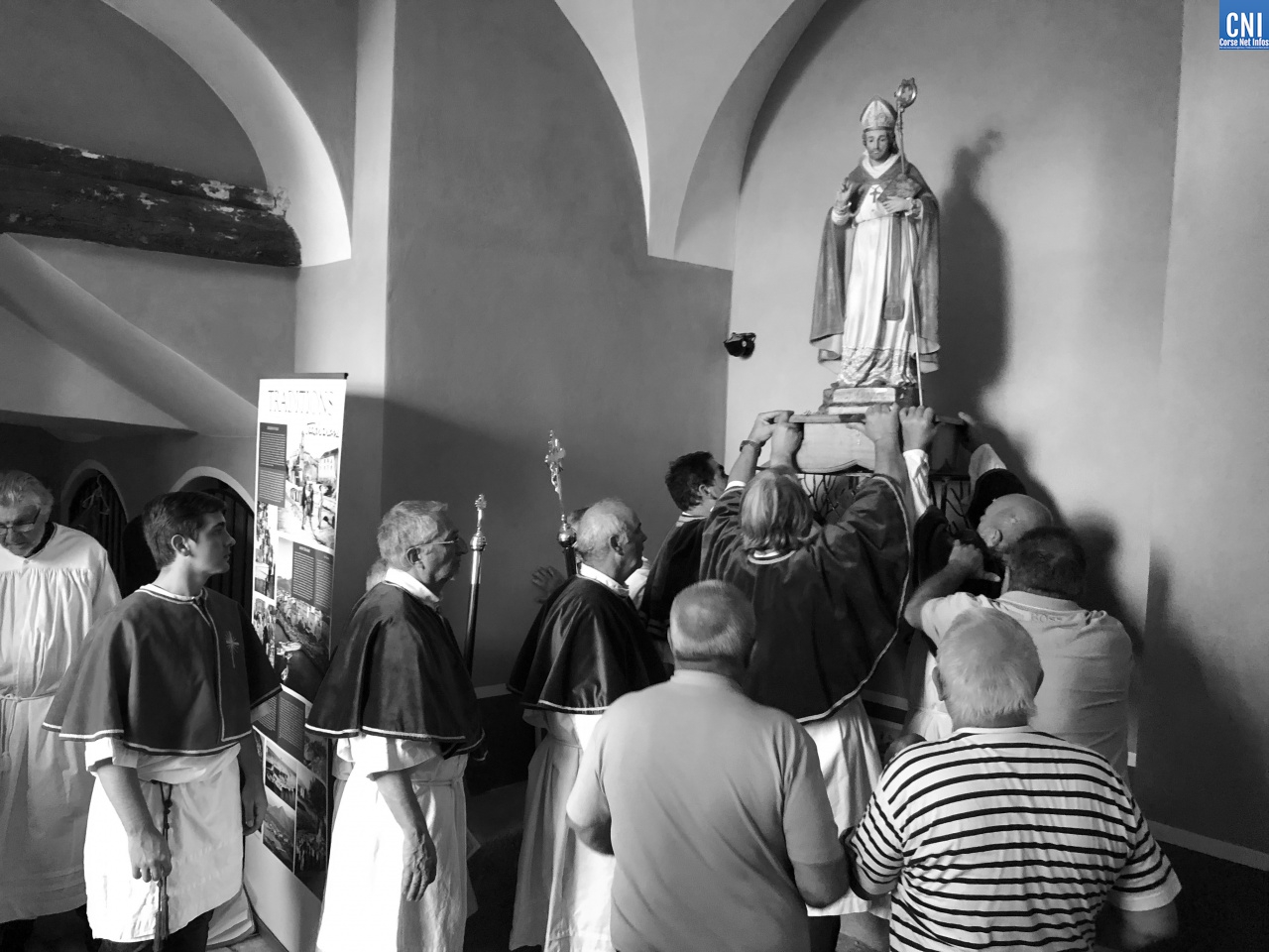 u santu patrone di a ghjente marinara, hà ritruvatu u so postu in u mercatu di i pesci chì hè statu rinnuvatu ùn hè tantu, inauguratu è binadettu ufficialemente in quellu ghjornu.