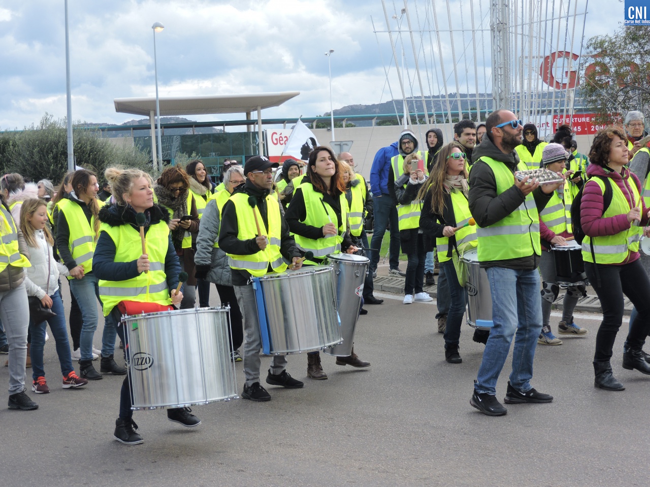 Les esprits se sont rapidement calmés et un groupe de musiciens joueurs de percussions et de rythmes brésiliens s’est ensuite joint aux déplacements des manifestants pour tourner lentement à pied autour du rond-point.