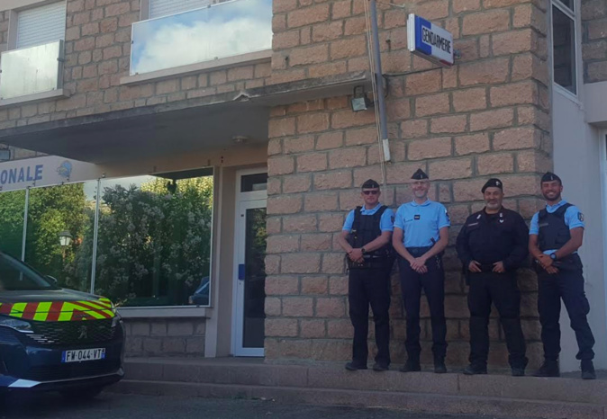 Le vice-brigadier Federico Siciliano entouré par les gendarmes de la Brigade Territoriale de Contact de Piana
