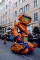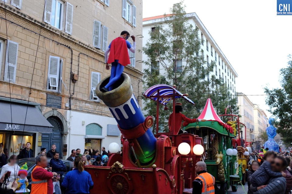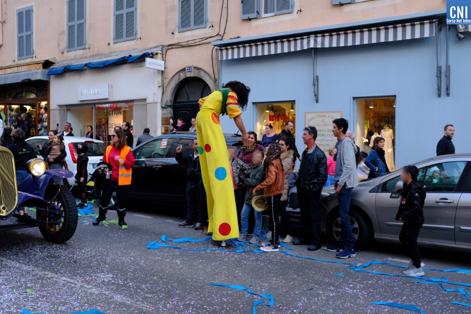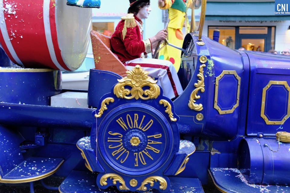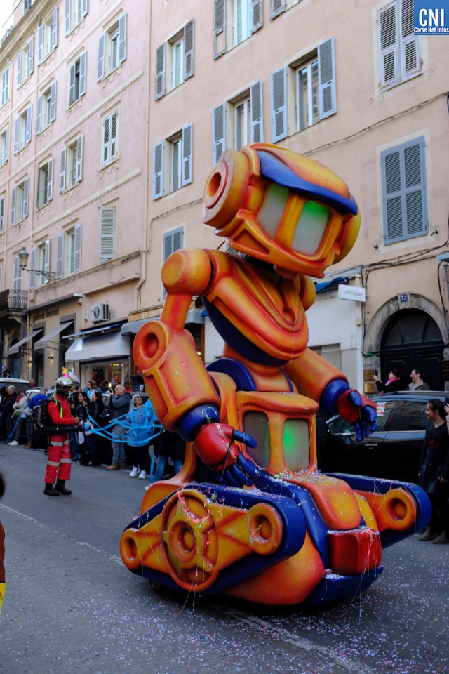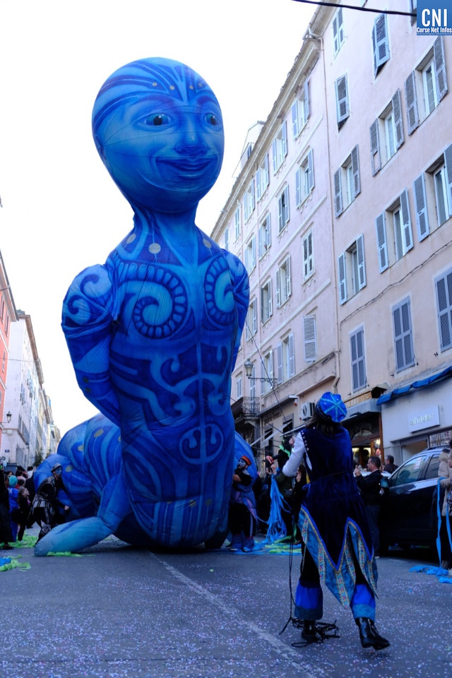 Grand soleil sur Bastia et une température plutôt clémente. C’est une voiture de police, sécurité oblige, qui ouvre le cortège mais ils sont suivis de près d’un groupe de danseuses brésiliennes qui nous font vite oublier la présence des forces de l’ordre. Maquillées, costumées, le sourire au lèvre, elles enchantent les passants de leurs pas de danse cadencé au rythme des tambours et autres instruments de métal de la batucada qui les suit. Vêtus de rouge et noir, eux aussi font le show et sont largement applaudis par la foule, nombreuse, massée de chaque côté du boulevard Paoli. Les premiers chars arrivent dont celui des pompiers qui s’amusent à arroser la foule de banderoles de couleur. Entre deux chars superbement customisés, approche une deuxième batucada au rythme un peu plus approximatif que la première mais à la bonne humeur communicative. Ils sont habillés de vert et de marron, quelques végétaux accrochés à leur veste ou leur chapeau, probablement censé évoqué la nature et l’écologie.
