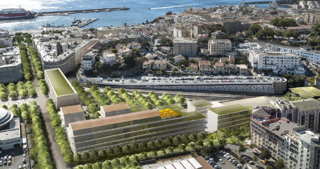 - Un réaménagement d’envergure du site de la gare à Bastia, conduisant à l’émergence d’un nouveau quartier, incluant notamment un nouveau bâtiment structurant pour accueillir la gare, les locaux administratifs et techniques des chemins de fer et mettre en valeur les très larges opportunités de création de places de stationnement , voire de construction de logements et de commerces.