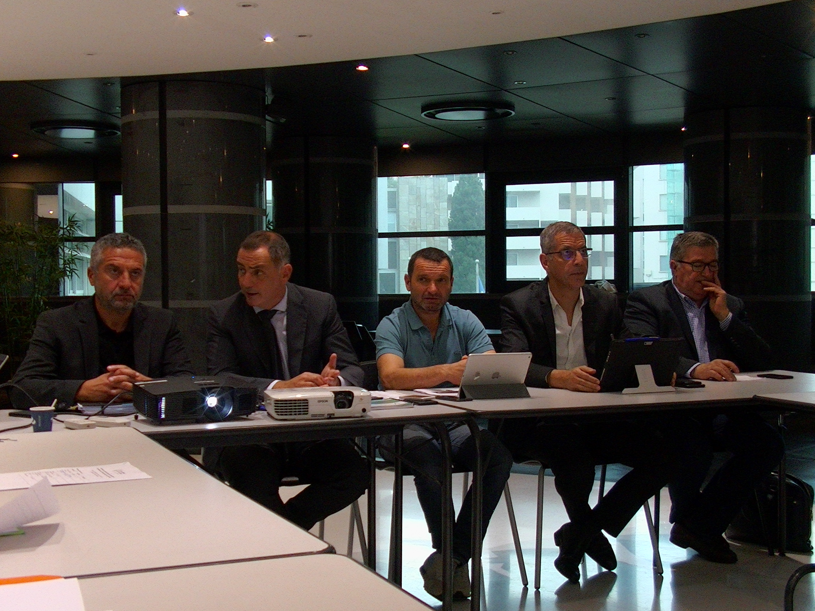 Philippe Albertini (CCI2B), Gilles Simeoni (CdC), Hyacinthe Vanni (CFC), Pierre Savelli (mairie de Bastia) et JL Milani (CAB): le COPIL est installé